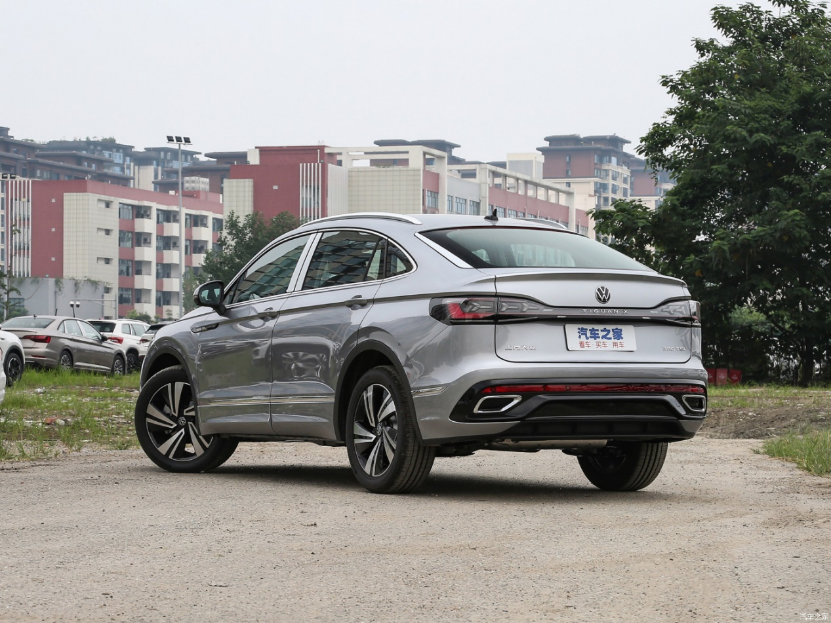 途观X采用了溜背式的轿跑SUV车身结构,造型上非常时尚动感,搭配平直的腰线与双五辐式大尺寸轮圈,以及宽厚的侧裙,让整车的运动感进一步提升。尾部则顺延了溜背式设计,平滑的后窗与尾部相交,并形成一个一体式的小尺寸扰流板造型。尾灯采用时下流行的贯穿式设计,两侧尾灯组内部设有“Y”型灯组模块,点亮后极具辨识度。后包围采用了双侧多层的设计,并搭配双边共两出的排气布局。车身尺寸方面,长宽高分别为4764/1859/1628mm,轴距为2791mm。