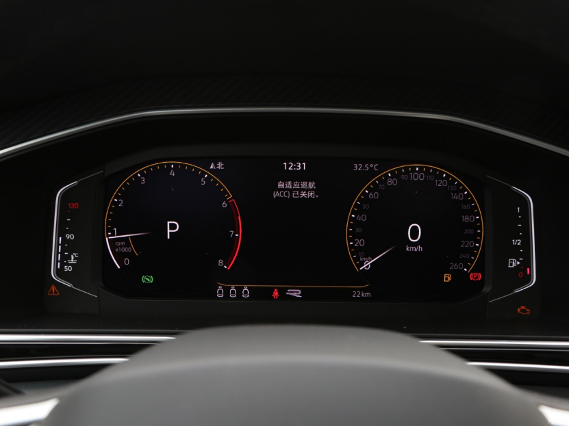 方向盘真皮材质包裹,还采用了打孔设计,握感较为饱满。多功能按键区采用了带震动反馈的触控设计,按压手感丝毫不逊于实体按钮,而且看上去更加简约。10.3英寸全液晶仪表可切换多种不同的显示模式,包括全屏地图等。