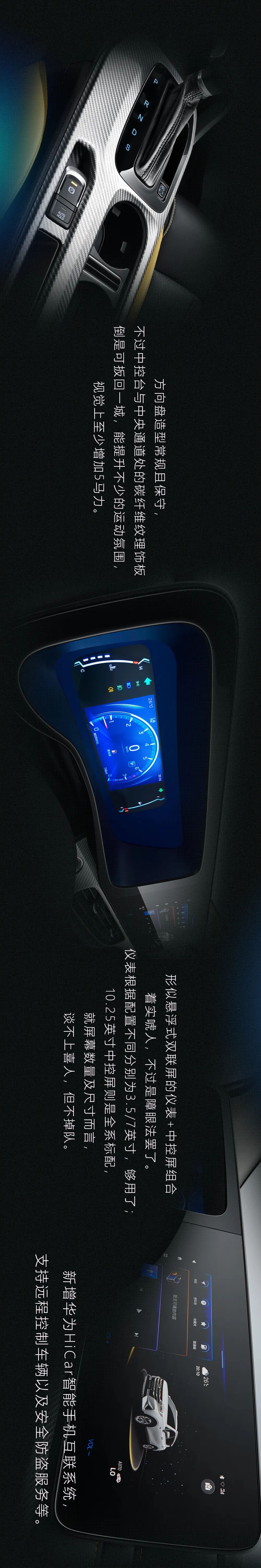 再加5000元升级到劲享版(自动挡中配),配置增加不少,包括前侧气囊、座椅加热、7英寸液晶仪表等,重点是支持华为HiCar的车机系统,需要注意的是全系车型仅此款配备,该操作着实让人摸不到头脑。该配置车型性价比极高,9.38万元就可以拥有一款在实用性、舒适性、智能化等方面表现均不弱的车型,我们最为推荐。