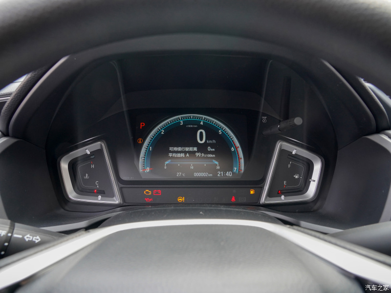 方向盘为三辐样式设计,握感比较细腻,大小也适中。燃油版最低配车型的仪表盘样式为机械指针+单色行车电脑,而燃油版中高配以及混动版车型仪表盘则采用了7英寸彩色TFT多功能信息显示屏。混动版的7英寸液晶仪表不再显示发动机转速了,取而代之的是动力输出状态和其它行车信息。