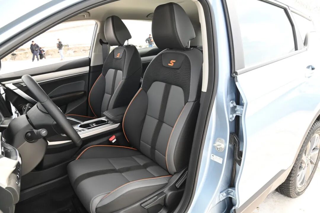 内饰部分,新车采用灰橙撞色设计,座椅亮色线条棱角分明,头枕下方橙色S字刺绣个性十足。该车匹配12.3英寸+7英寸的中控显示屏与液晶仪表组合,并采用悬浮式设计,渲染整车内饰的科技氛围。此外,中控屏下方的挡杆区域保留了一定的物理按键,挡把采用航空推杆式造型,整体运动感得到加分。