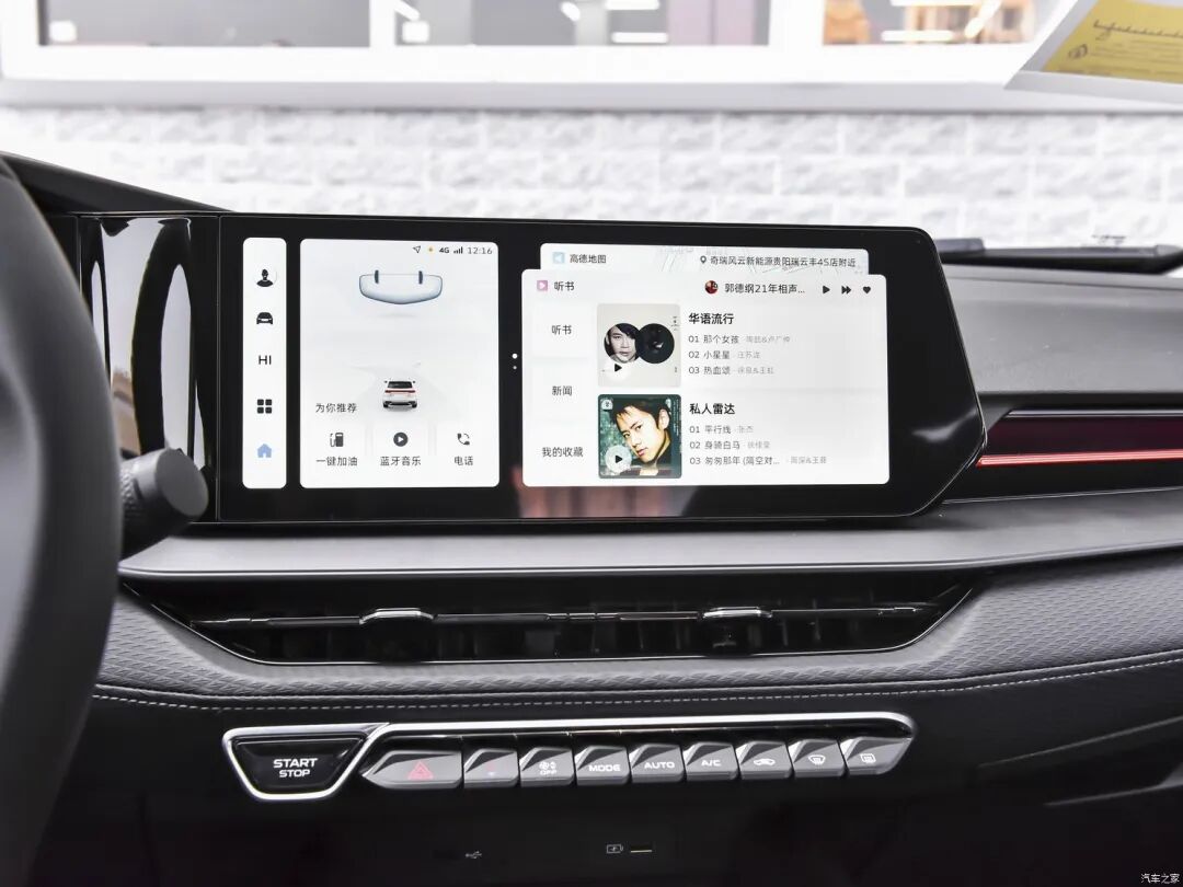 内饰方面,“能量觉醒”环抱驾驶舱将车内的科技感和运动感都得以升级。配色上采用黑色主色调搭配灰白色装饰,适应大多数消费者的审美取向。而最为抢眼的则是中控上方的双联屏设计,整体UI设计简洁清晰。中控屏下方配备物理按键方便常用功能的操作。
