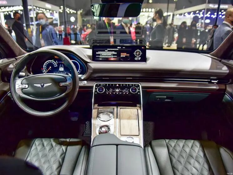捷尼赛思GV80内饰设计十分豪华,对称式中控台辅以银色饰条,整体的高级氛围营造得很到位。