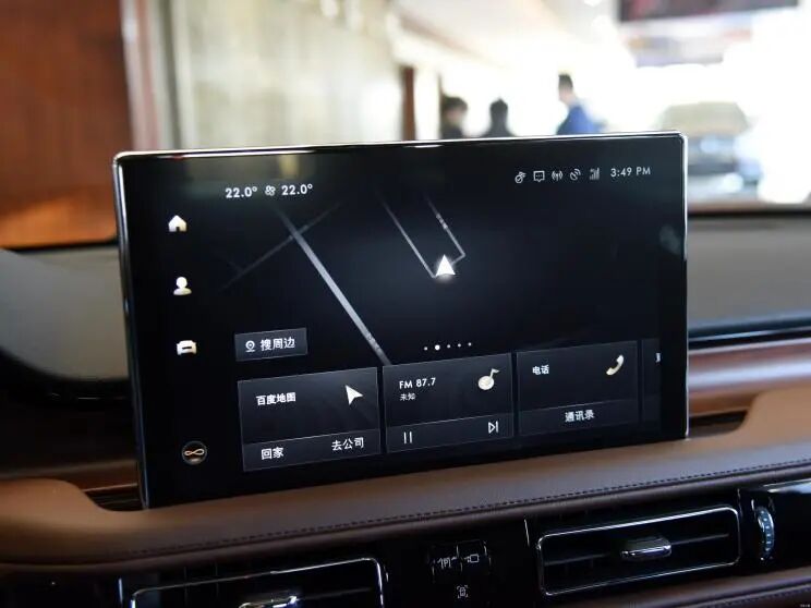 英菲尼迪QX60中控屏运用悬浮式的设计,尺寸是12.3英寸,给人一种十分时尚的感觉,屏幕尺寸较大,科技感非常强烈。另外,中控屏配备了道路救援呼叫、GPS导航系统、OTA升级等六项配置。