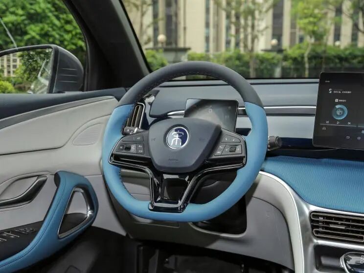 这款车皮质方向盘运用平底三辐式的设计,看上去还不错,另外,这款车采用了组合式仪表盘设计,各项行车参数信息一目了然。
