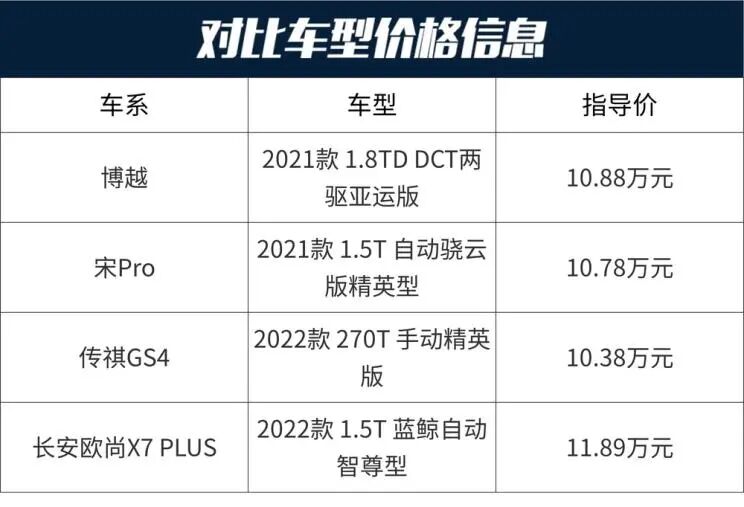 四款车的详细介绍到此就结束了,下面让我为大家总结一下。博越对称式中控台看上去还是很规整的。宋Pro内饰呈现出个性的设计风格,整体造型可圈可点。传祺GS4车侧呈现出年轻的设计风格,整体走了当下比较流行的动感路线,营造出朝气蓬勃的视觉效果。来到后排,长安欧尚X7 PLUS后排空间充裕,地板平整度不错。屏幕前的你会如何选择这四款车呢?快到评论区说说你的看法吧。