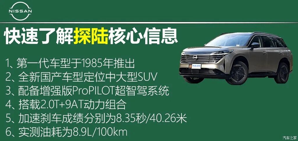 探陆作为东风日产推出的中大型SUV,其目标也非常明确,就是为家庭用户打造的这么一款车。从产品来看,虽然整车没有太过让人一眼难忘的新鲜功能,但也基本让你很难找到一个非常明显的短板,并且相比同级别对手而言,更低的指导价也是其优势所在,但除了面对国内合资品牌对手之外,中国品牌对手也各具特色,探陆能否在竞争如此激烈的2024年站稳脚跟?我们拭目以待。