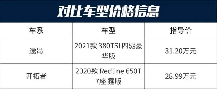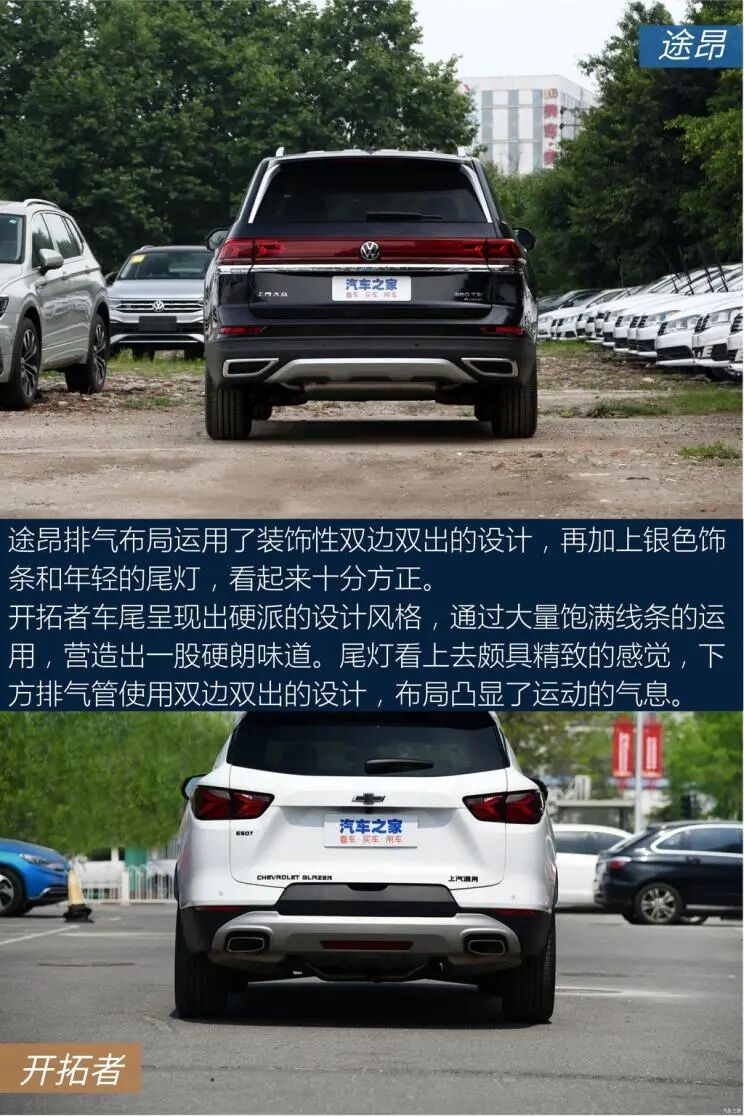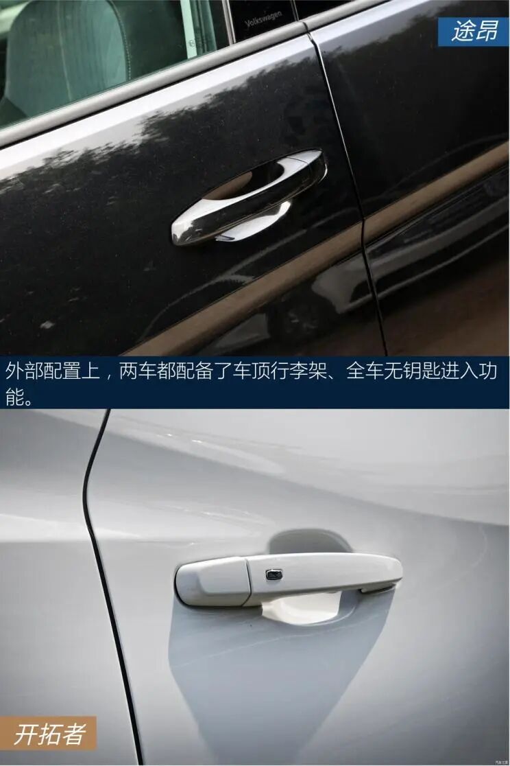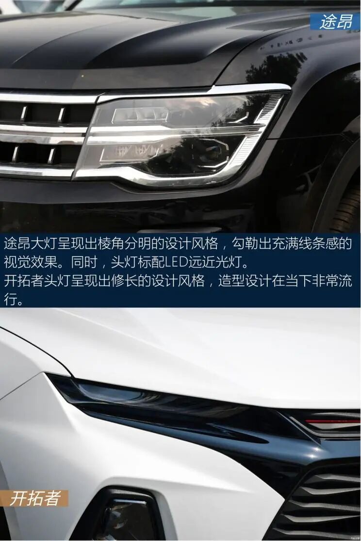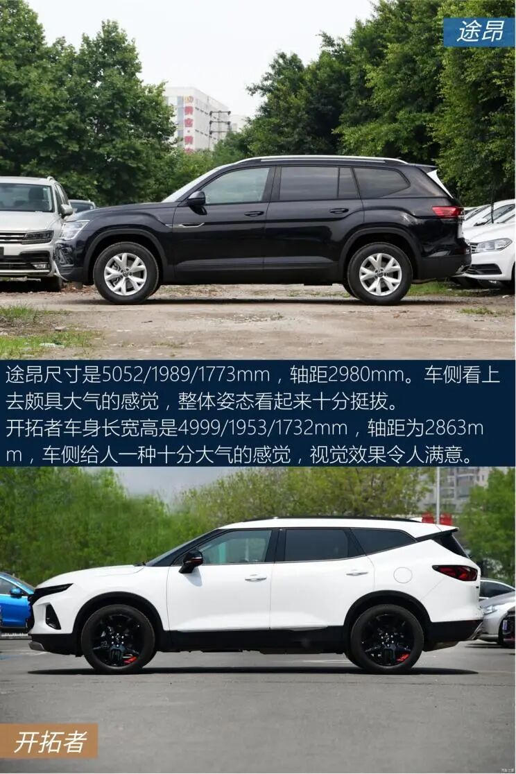 以上就是关于两车的全部内容了,不知道会不会对大家选车有帮助。上汽大众-途昂车侧呈现出流畅的设计风格,顺滑的线条彰显出灵动的美。中控屏尺寸是12英寸,中控屏运用悬浮式的设计,比较符合其整体的定位。开拓者中网采用了多幅式的设计,配合线条大气的前脸,看上去颇具犀利的感觉,富有“杀气”,辨识度非常高。非对称式中控台显得更加精致。这两款车各有各的风格,不知道你会怎么选?