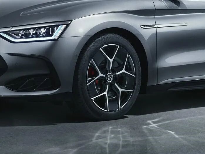 新款汉DM全系标配19英寸轮圈,轮胎规格为245/45 R19。根据车型的不同,配备不同样式的轮圈。从官图上看,在汉DM-i车型上,将提供多条辐轮圈以及低风阻轮圈可选;而在汉DM-p车型上,将匹配造型更运动的轮圈,且配备性能更强的Brembo刹车系统。