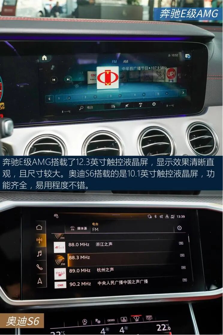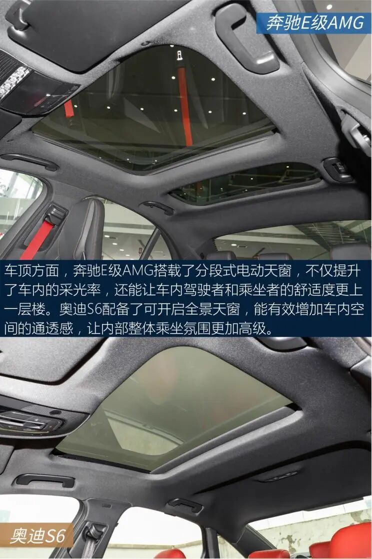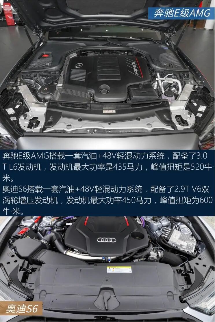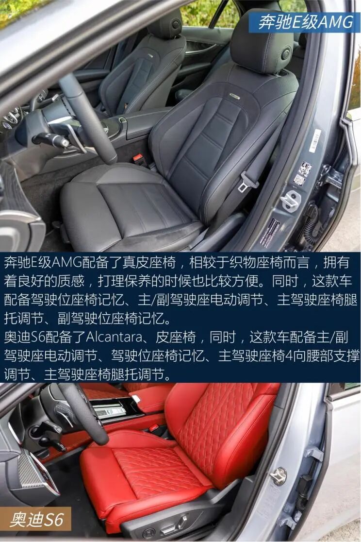 以上就是关于两车的全部内容了,不知道会不会对大家选车有帮助。梅赛德斯-AMG-奔驰E级AMG中控屏尺寸是12.3英寸,双联屏的设计视觉上看着富有时尚气息。中网采用直瀑式的设计,加上线条大气的车头,给人一种非常运动的感觉,提升了整车的档次。奥迪(进口)-奥迪S6官方0-100km/h加速为4.5s,动力随叫随到,输出相当迅猛。这款车配备可开启全景天窗,能进一步提高采光率,让车内空间变得更明亮。那么如果这两款车让你选的话,你会选择哪一款呢?