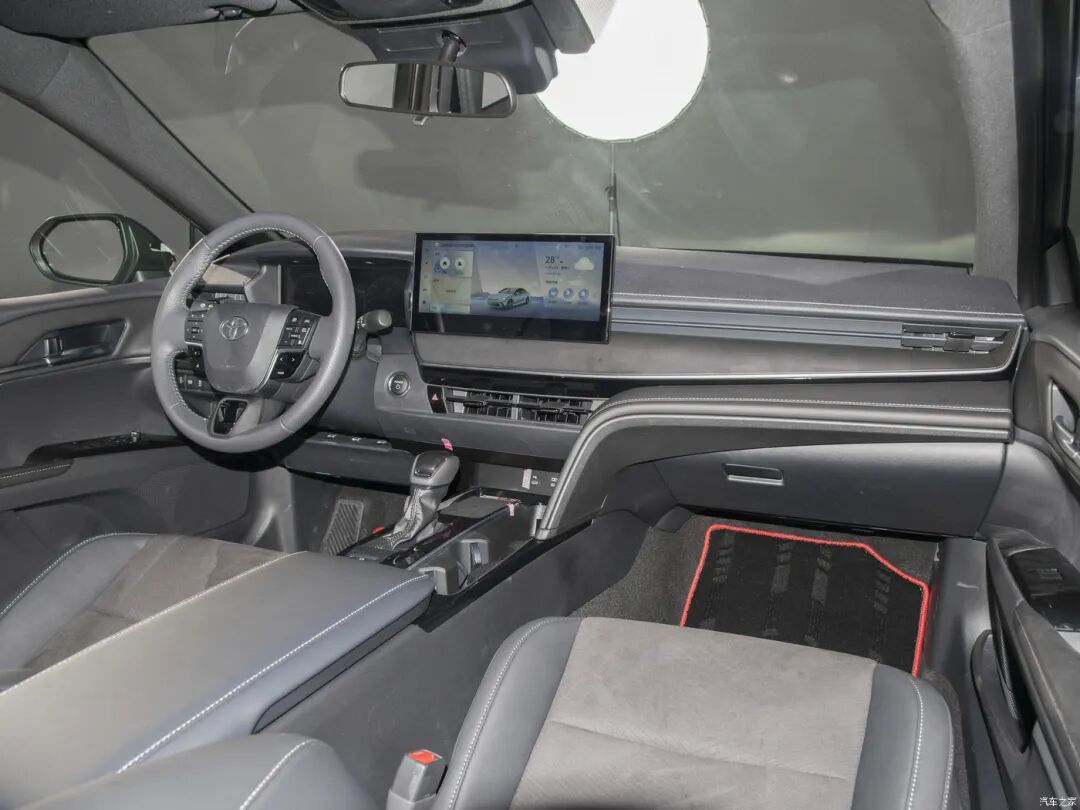 内饰采用全新设计,中控台造型饱满且富有立体感,悬浮式中控大屏是惹眼的存在。方向盘造型基本与皇冠保持一致,比较大气。手机无线充电功能没有缺席,挡杆采用常规机械式。