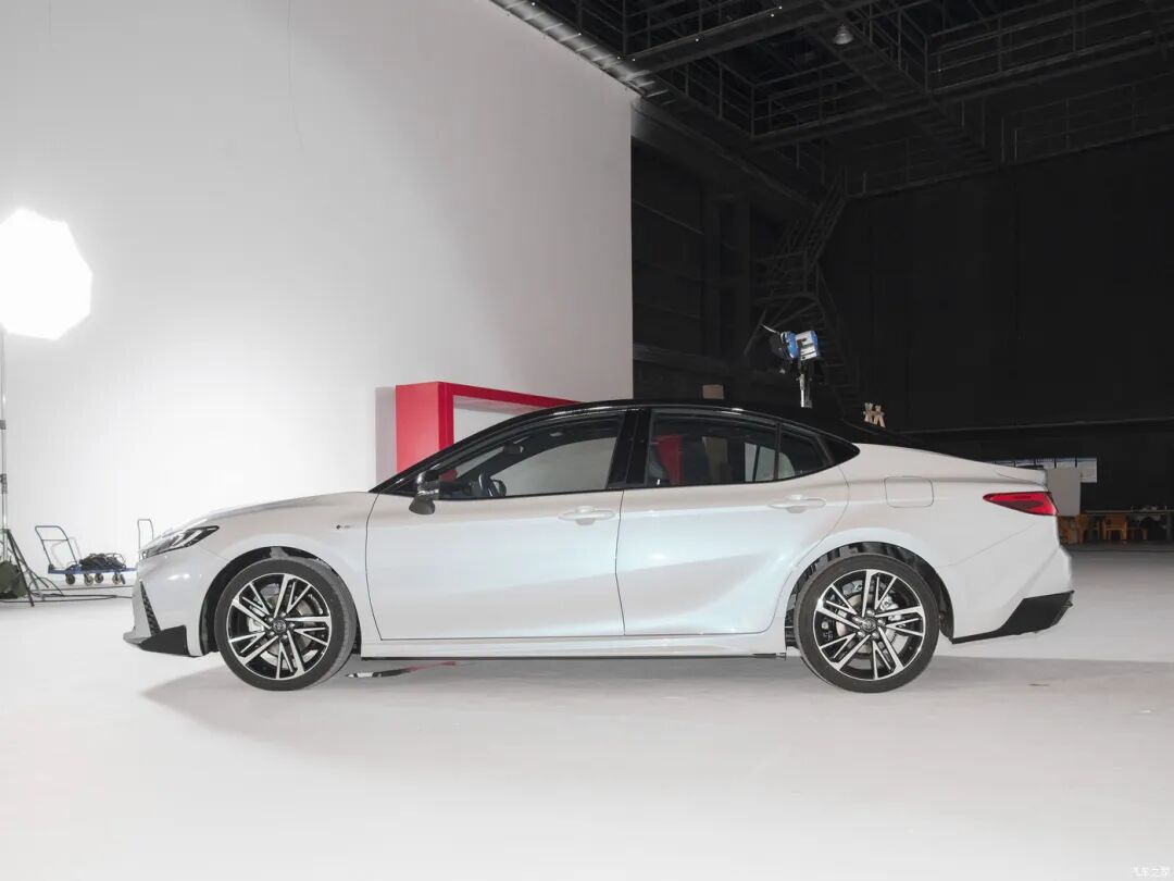 侧面造型与第八代凯美瑞基本如出一辙,轴距也没有变化,依然为2825mm。上扬的腰线营造出俯冲的视觉效果,双色车身以及黑色外后视镜对营造运动感大有裨益。