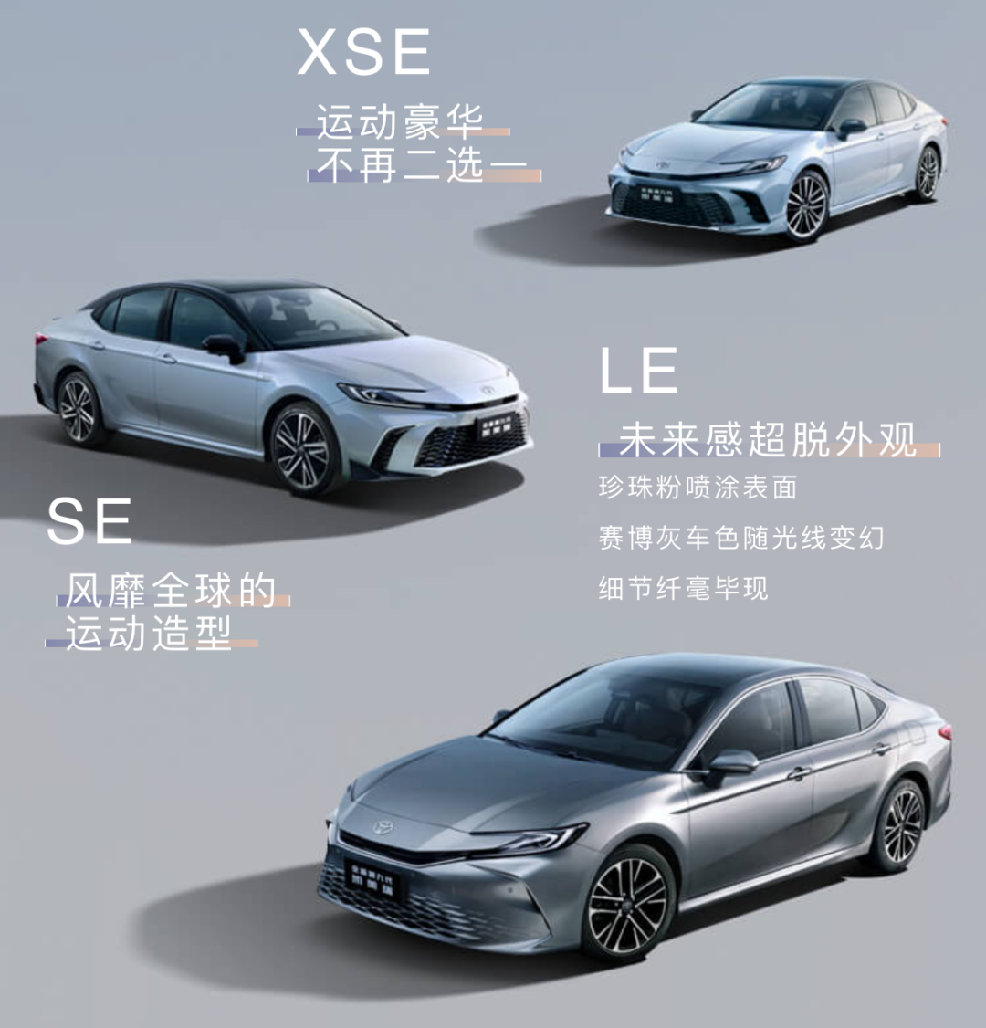 全新凯美瑞是第九代车型,基于TNGA-K平台打造,虽然造型方面不出意外地采用了最新的家族设计风格,但是一下提供SE、LE、XSE三种不同的外观造型还是有些令人出乎意料,选择更多更能契合不同消费者的审美。