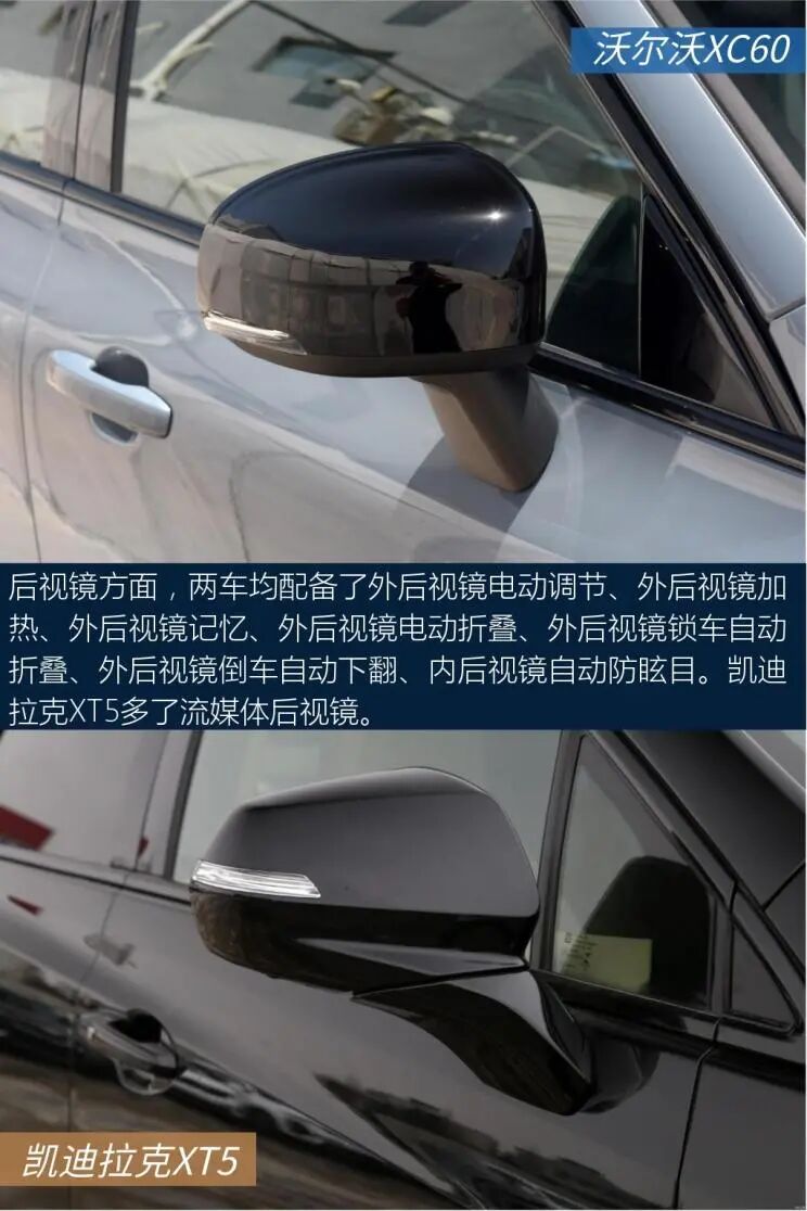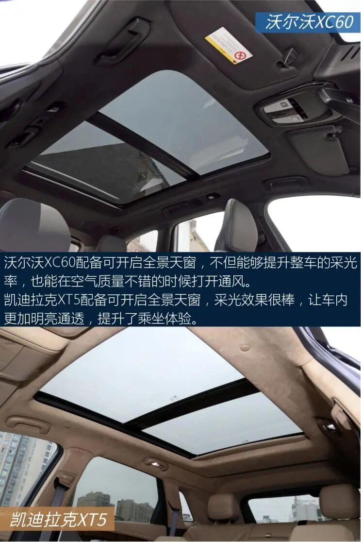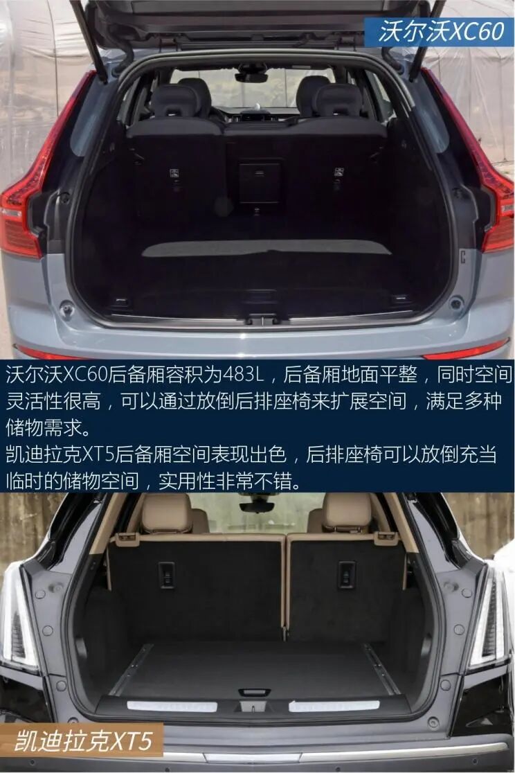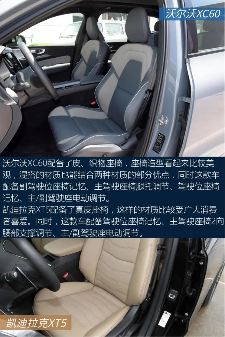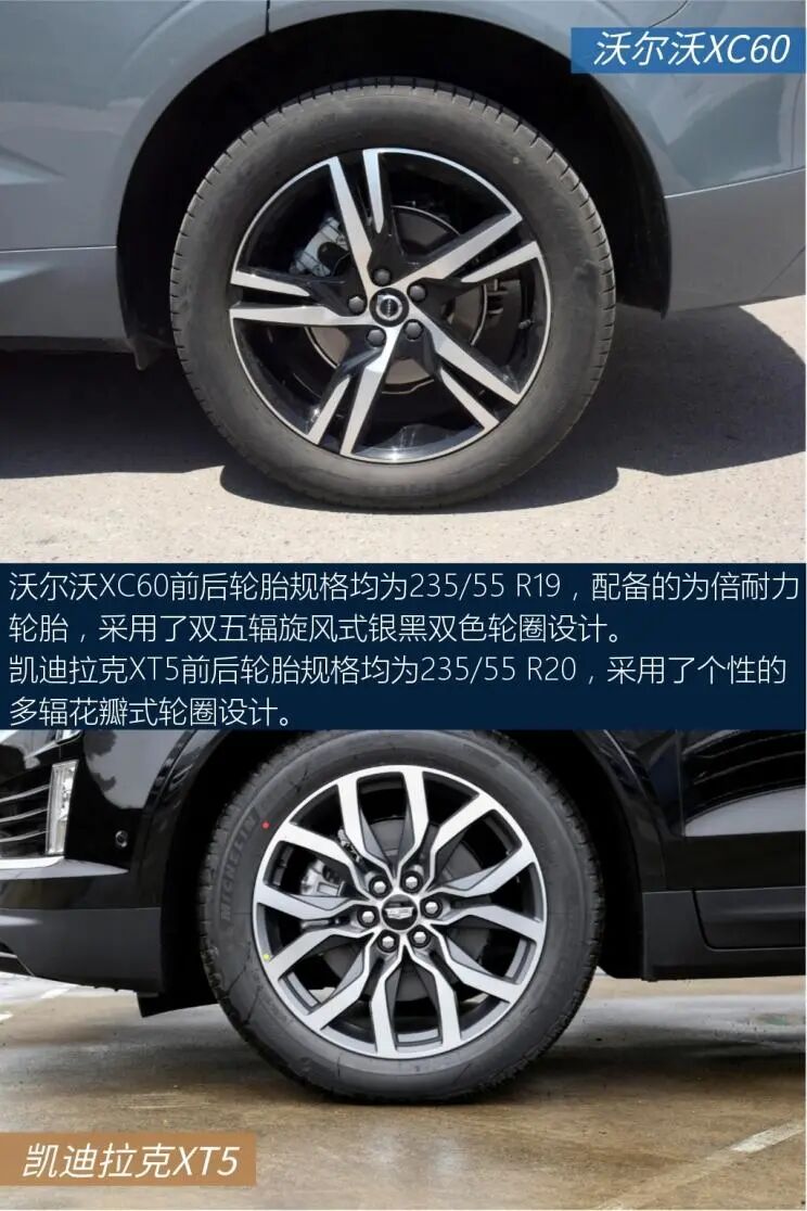 以上就是关于两车的全部内容了,不知道会不会对大家选车有帮助。沃尔沃亚太-沃尔沃XC60中控屏尺寸为9英寸,中控屏采用嵌入式的设计,造型简洁明了,实用性不错。中网运用点阵式的设计,配合线条大气的车头,风格比较端庄,稳重中透着大方。上汽通用凯迪拉克-凯迪拉克XT5车侧呈现出精致的设计风格,细节处理相当到位,令人满意。对称式中控台视觉效果很工整。这两款车的实力都很强,具体怎么选还得看个人的用车需求。