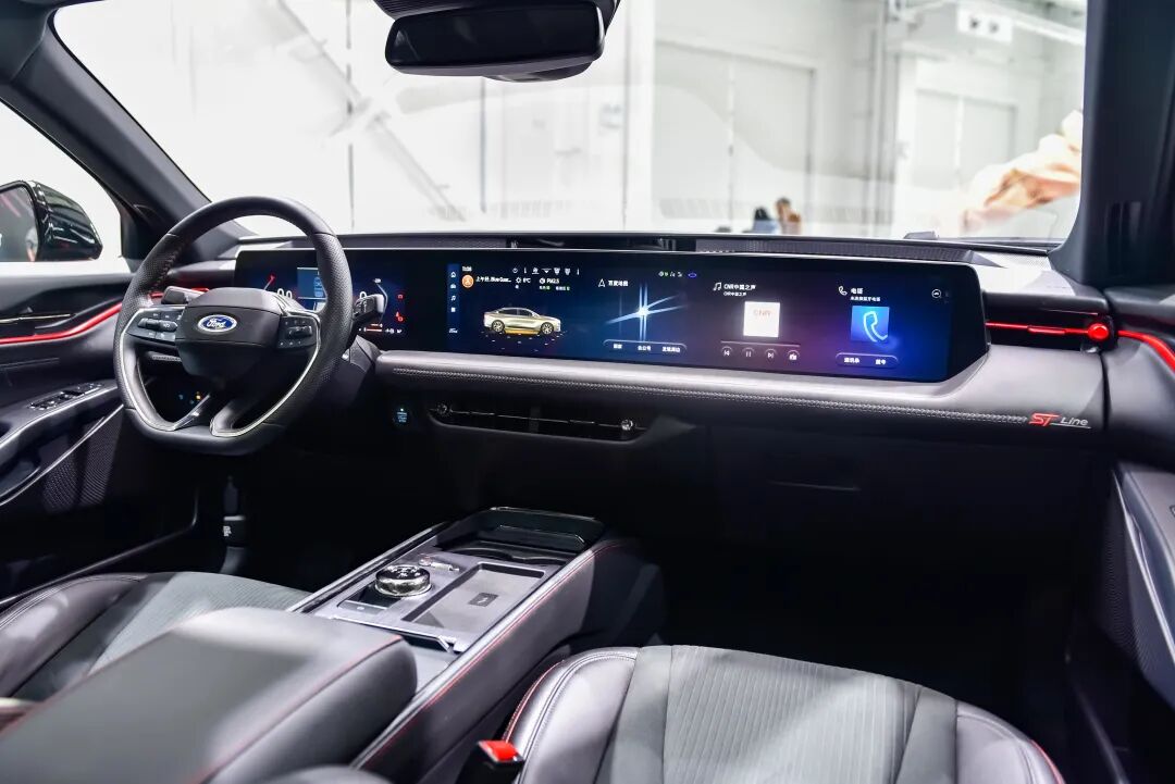外观神似EVOS,内饰更是直接复制过来,这套设计给人的第一感觉,如同身临新能源车型内,几乎横贯中控台的1.1米超大屏幕视觉冲击力与科技感直接拉满。作为ST-Line车型,新车在配色与细节处做了升级,用深色+红色饰条来强调它的与众不同。