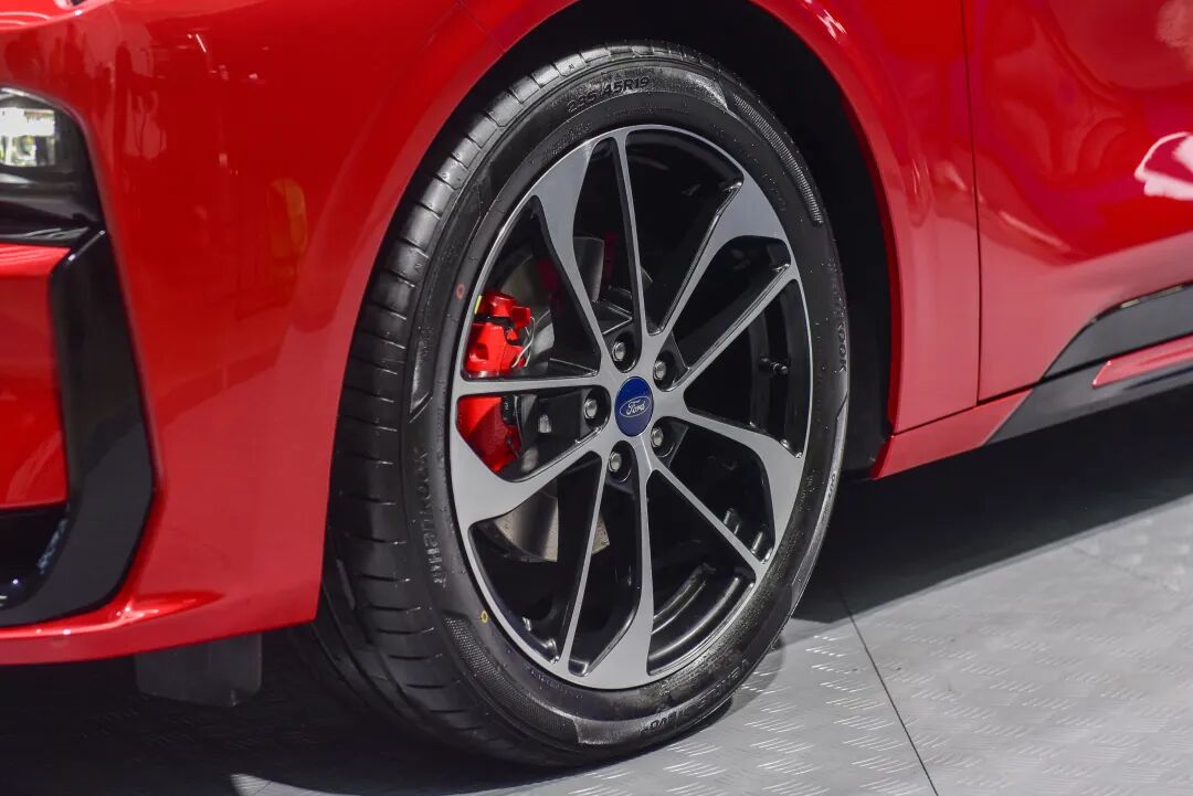细节处,提供隐藏式门把手、运动化轮圈、专属红色卡钳、ST-Line标识、更大面积的侧裙装饰,总之都是为运动化服务。实拍车型轮胎采用的是韩泰万途仕Ventus S1 evo3系列,主打运动,具体规格为235/45 R19。