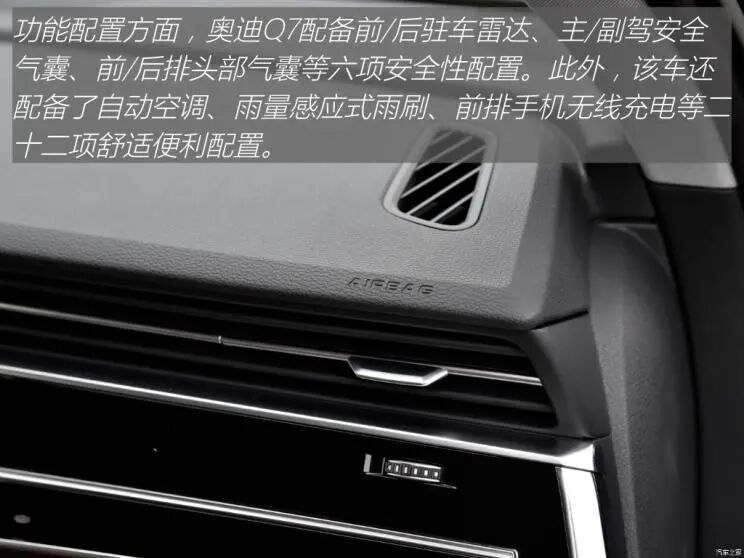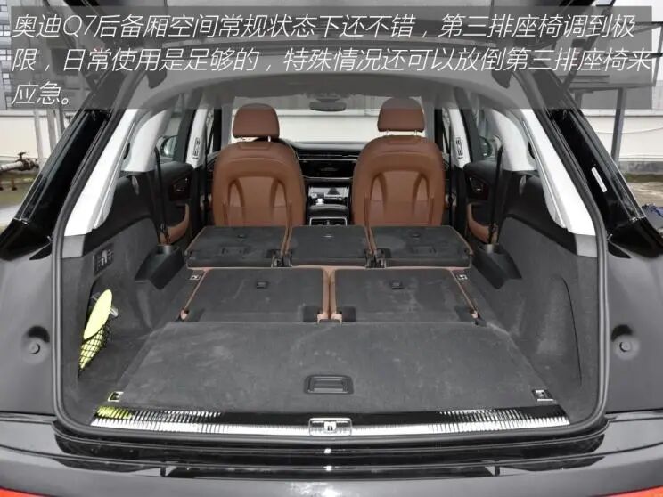 以上就是今天我带来的实拍体验,下面就让我为大家总结一下吧。奥迪(进口)-奥迪Q7第二排空间较为宽敞,第三排空间表现较为一般,更适合短途乘坐。这款车配备主/副驾安全气囊、主动刹车/主动安全系统、前/后排头部气囊等六项安全性配置,功能非常全面,能够较好地提升驾驶者的信心。中控屏尺寸是10.1英寸,运用了嵌入式的设计,屏幕尺寸较大,科技感非常强烈。总的来说,这款车的整体表现还是能够令人满意的。
