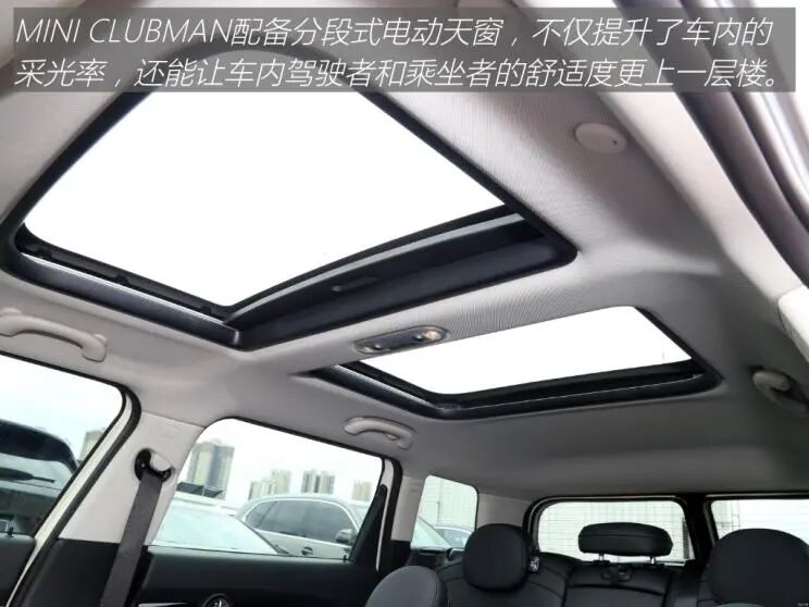 看了这款车的实拍体验,大家一定有很多话想说,我也是一样。MINI-MINI CLUBMAN配备了雨量感应式雨刷、可加热喷水嘴、分段式电动天窗等八项舒适便利配置,虽然不是很丰富,但满足日常需求还是够的。后排座椅方面,后排空间不大,但能满足日常出行需求。这款车配备分段式电动天窗,虽然不是一整块玻璃,但很大很通透,视觉效果还算不错。总的来说,这款车还是值得推荐的。