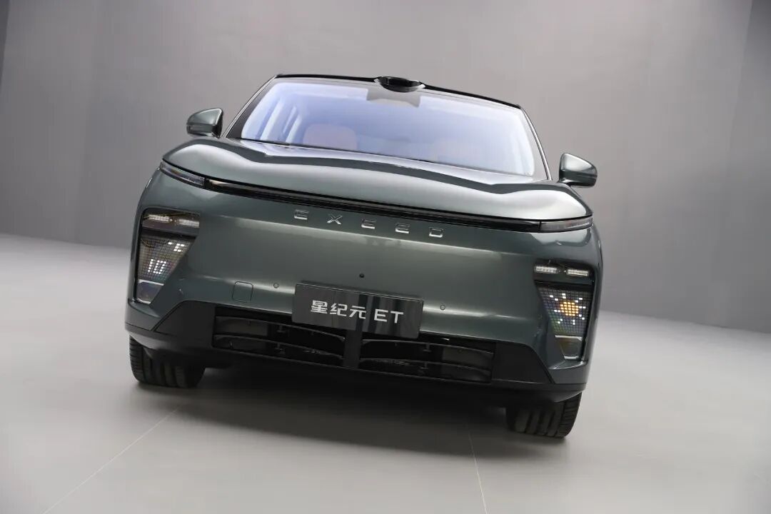星纪元ET基于“大者为奢”的设计理念打造,整车拥有鲜明的新能源风格,头顶激光雷达,配备贯穿灯带,采用封闭前脸,可谓是“电味十足”。前舱盖造型非常饱满,横贯左右的灯带也呈现出圆润的感觉,下方的EXEED标识表明了出身。前包围设计比较强调视觉张力,主动式格栅开启之后更显侵略性。