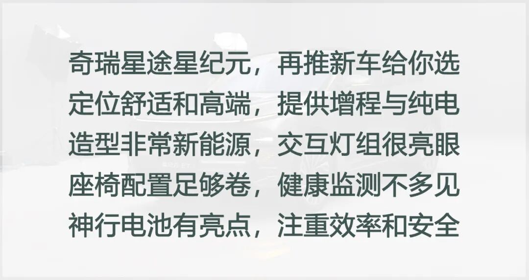 星纪元是奇瑞高端品牌星途旗下的高端新能源产品序列,肩负在新能源高端市场“开疆拓土”并引领奇瑞旗下各品牌向上的重任,产品方面自然也是博采众长的集大成者。星纪元序列首款中大型车星纪元ES已于2023年底上市,现在是首款SUV车型的“SHOW TIME”。