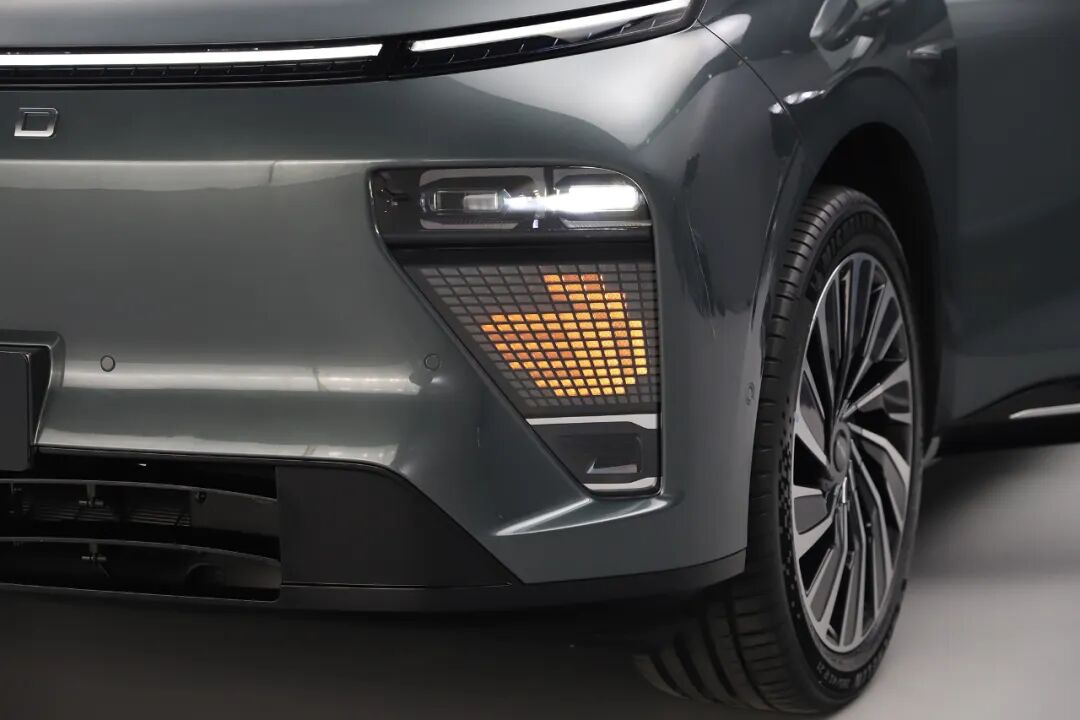 灯组绝对是整个前脸的重中之重,远近光源是扁平造型的LED灯珠,下方的ISD风语交互灯在造型上承袭了星纪元的家族设计,具备充电点亮、品牌字符流动、天气温度、笑脸/点赞表情包以及行人优先等多种不同场景下的交互功能,而且支持OTA升级。此外,交互灯还可以与转向灯联动显示转向信息,并且灯组下方部件还会在地面投影出转向箭头以提醒交通参与者。
