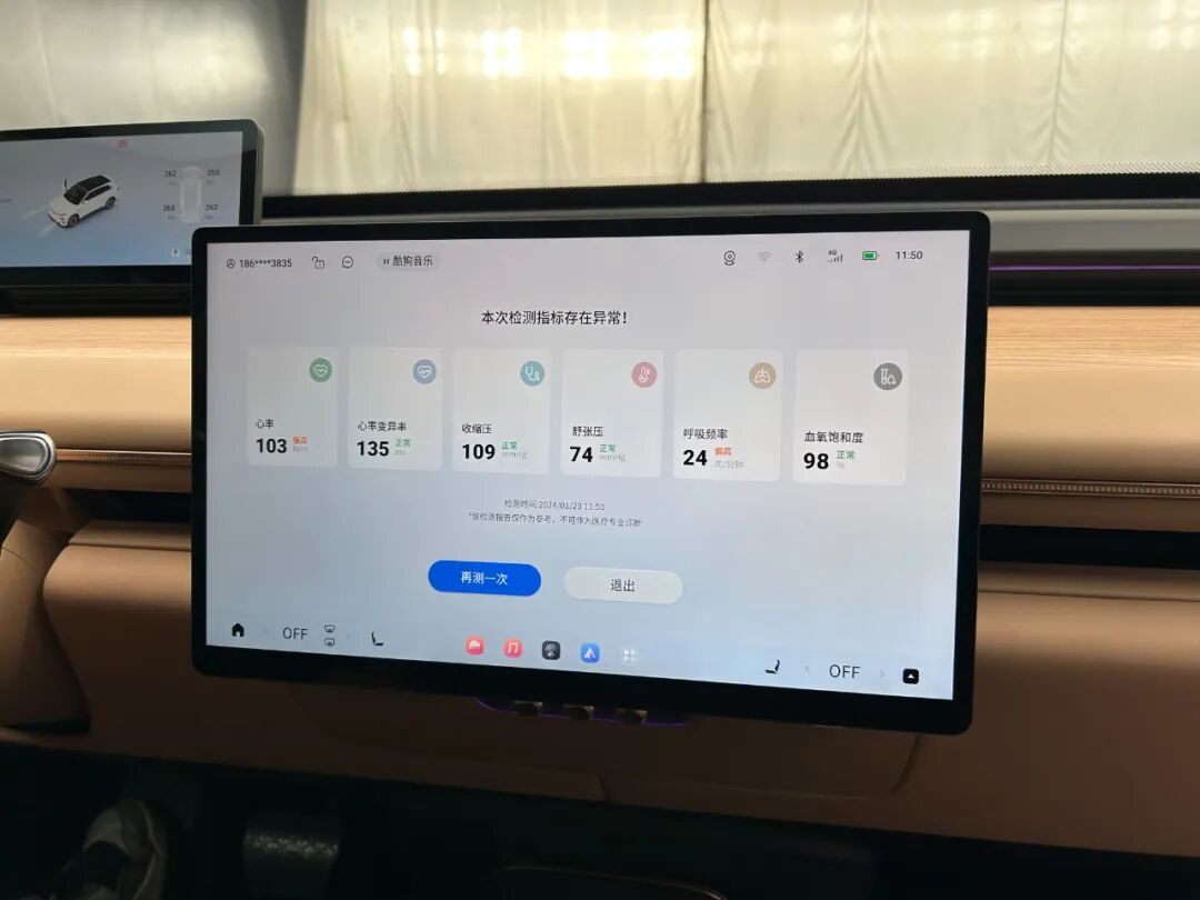 健康监测功能基于视觉识别技术和深度神经网络模型分析,可对心率、血压、呼吸频率和血氧饱和度进行监测,同时定期生成报告,这个功能在汽车产品上并不多见。