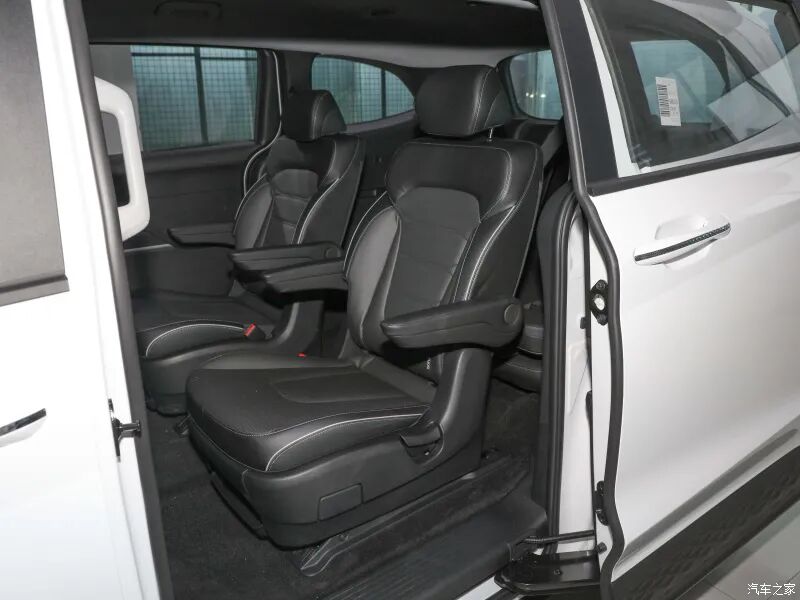 侧滑门是一款中大型MPV的灵魂配置,这款入门车型两侧侧滑门均为手动开闭,可以选装右侧电动侧滑门。座椅采用MPV车型常见的2+2+3的7座布局,第二排两个独立座椅配备有扶手而且支持调节前后位置和靠背角度。