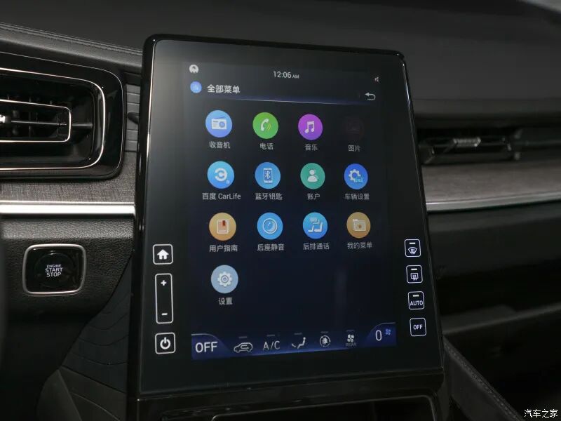 10.4英寸中控大屏集成蓝牙、收音机、设置、百度CarLife、后排通话、空调控制、倒车影像等功能,相比高配车型缺少了导航、语音助手、车联网等功能。