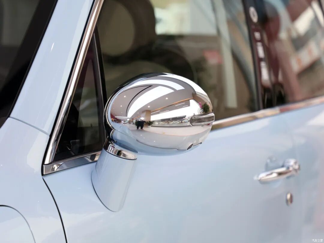 来到车身侧面,芭蕾猫依旧采用了较为圆润的设计,车顶的弧线线条过渡地很自然,毫无违和感。另外,高亮轮圈、后视镜、车门把手等细节显得该车复古范儿十足。