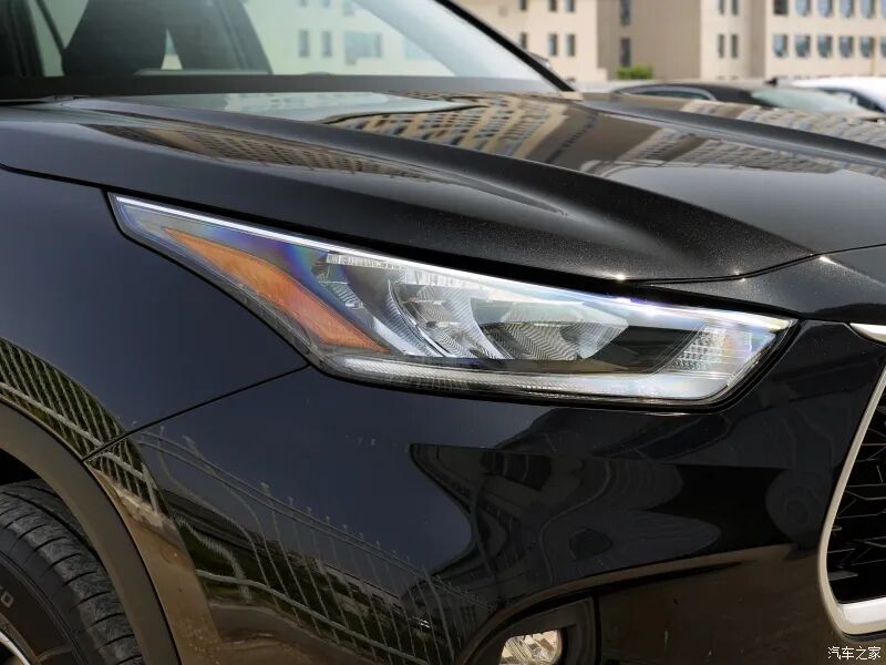 就外观来看,入门版车型和高配还是有些区别的,高配车型前杠下方的哑光银色装饰条被黑色工程塑料取消。在大灯配置上,2022款汉兰达全系标配了全LED光源远近光灯,并且带有自动开闭功能,但实拍的入门版车型灯腔内部取消了透镜,看上去会显得“目中无神”。