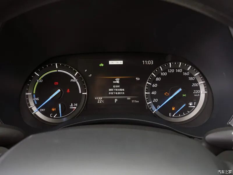 机械+液晶屏幕组合式仪表丝毫不显廉价,蓝色指针既突出了新能源属性同时又有几分精致的味道。入门版车型方向盘右侧的功能区域由于缺失了定速巡航、安全辅助等配置,按键被一块黑色“小黑板”取代。