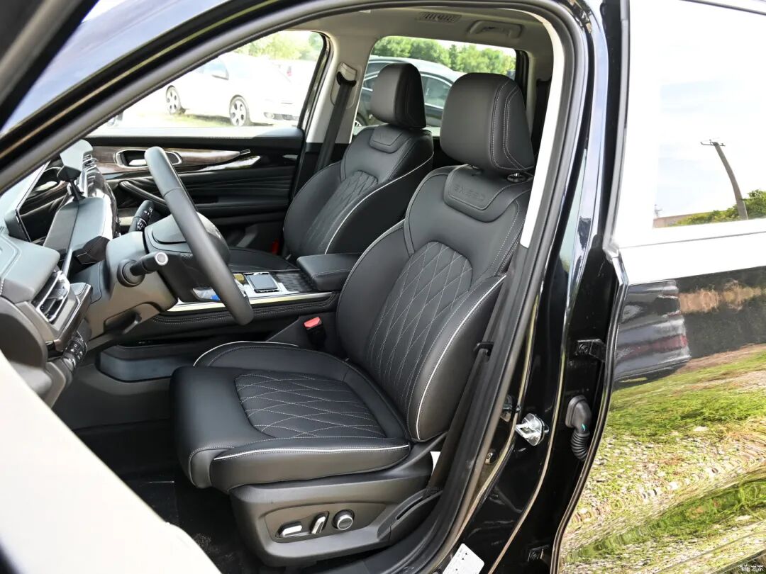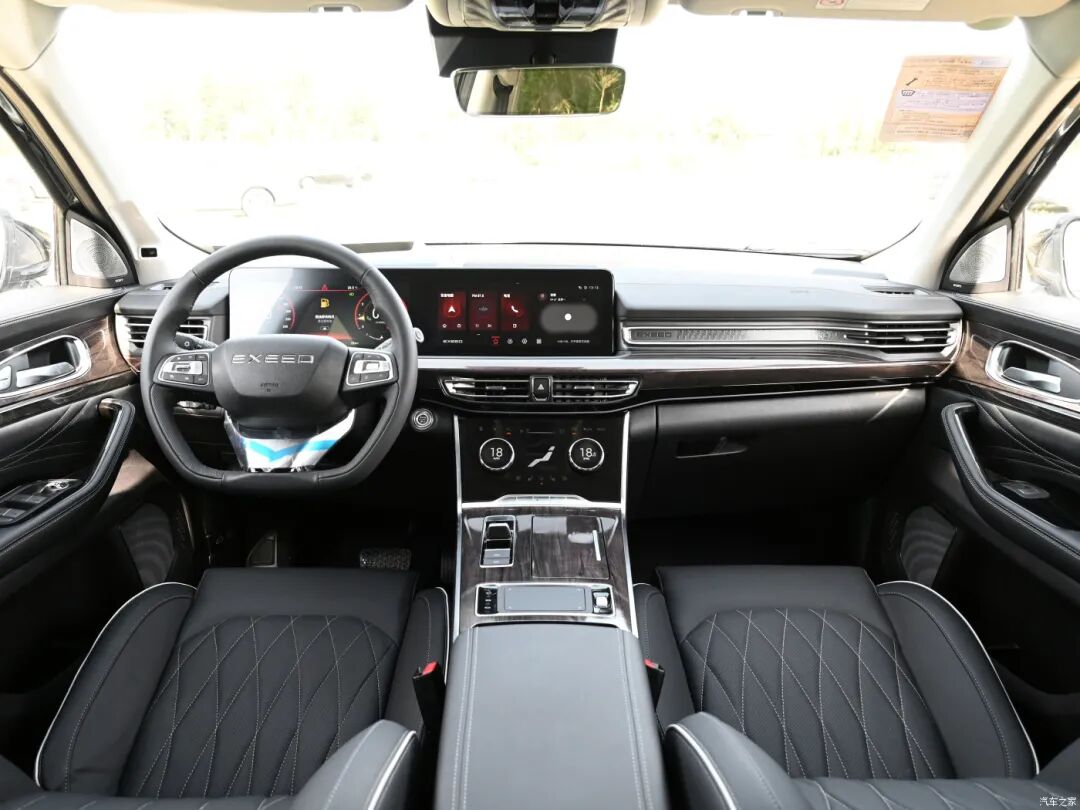 车内很明显就是星途的家族设计风格,但毕竟是旗舰的身份,在豪华氛围的营造上确实要比其它车型更加卖力,就比如大面积的木纹饰板、菱形纹路的皮革装饰。