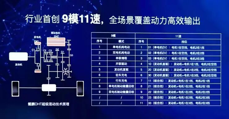 “3擎3挡9模11速”是鲲鹏DHT混动系统的一大特点。