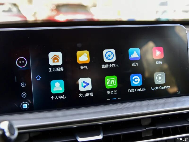中控屏集成导航、音乐、设置、雄狮快应用、百度CarLife、苹果CarPlay、车家互联、全景影像、语音助手等功能。