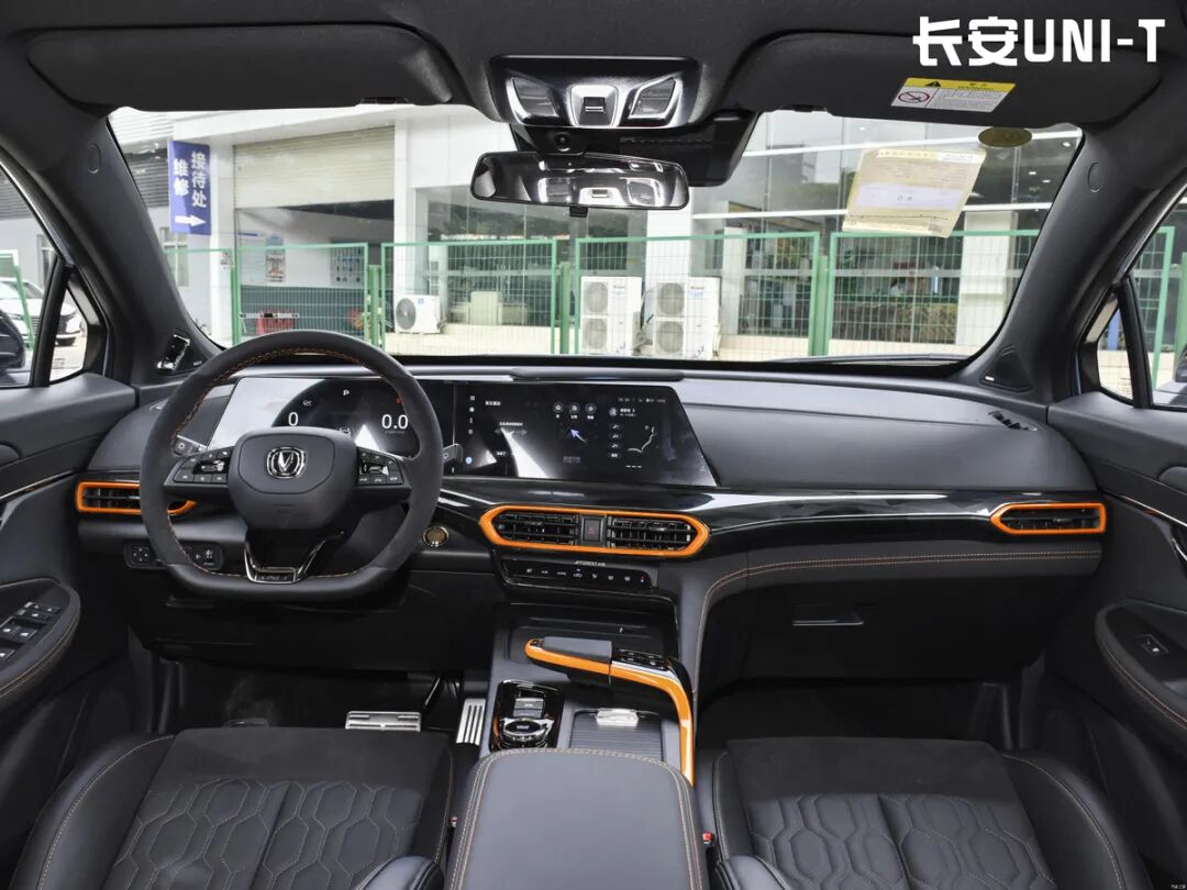 UNI-T的内饰设计相信大家很熟悉了,双12.3英寸大屏功能丰富。平底方向盘非常有运动气息,高配车型还具备麂皮材质。