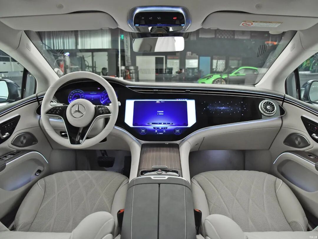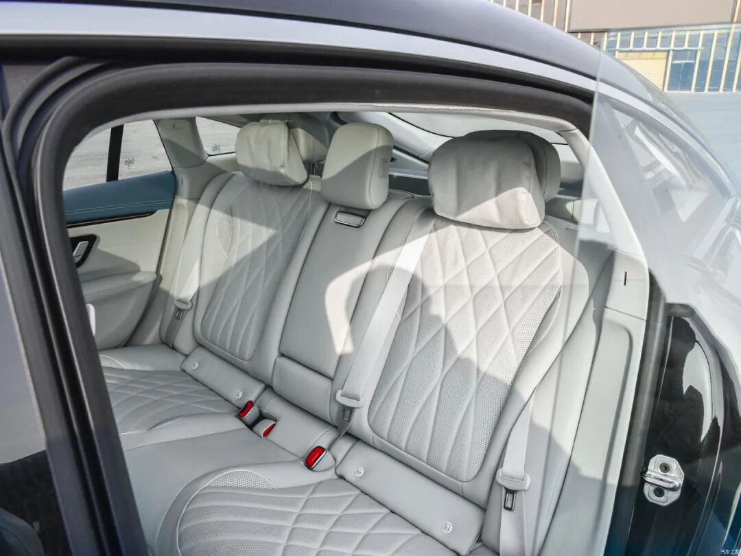 进入车内,搭载MBUX Hyperscreen系统后,由曲面玻璃无缝衔接的三块大屏非常前卫,与S级相当的舒适性配置也保证了EQS的乘坐体验。