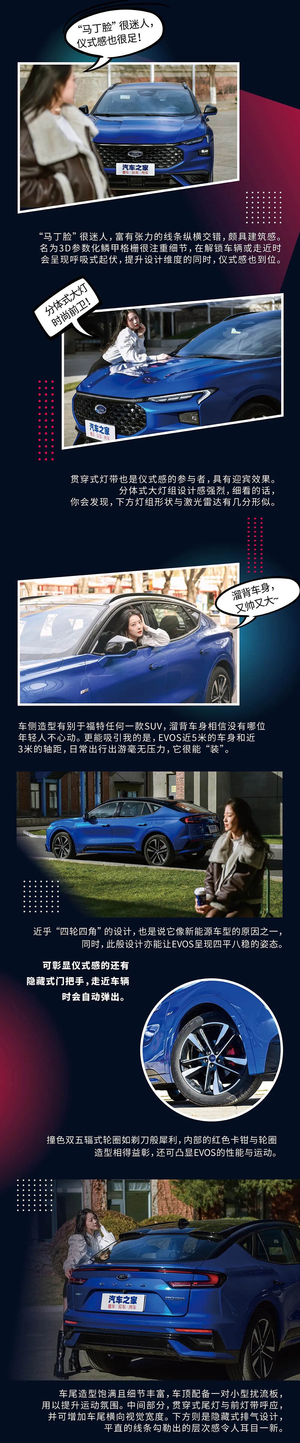 通过本文的车主现身说法不难看出,福特EVOS似乎已经朝着90后年轻群体的喜好方向去发展。个性鲜明且富有设计感的外观、仪式感十足的细节、同新能源车型一般的内饰设计、科技感拉满的配置、张弛有度的动力输出……上述都是EVOS的优势,也是可打动年轻人群的点。此外,还有一点非常重要,其19.98-25.98万元的价格区间也极具亲和力。