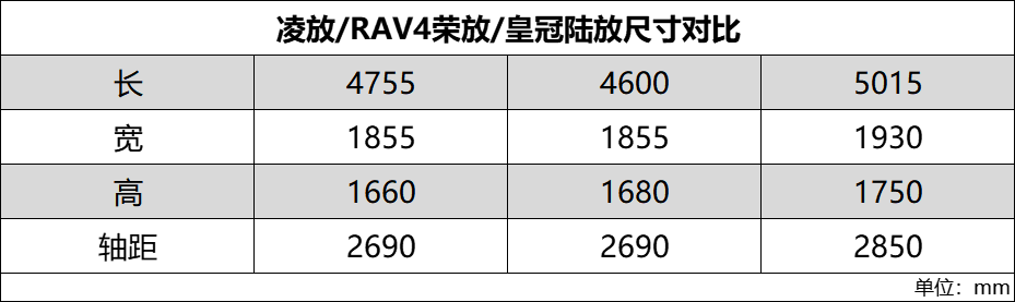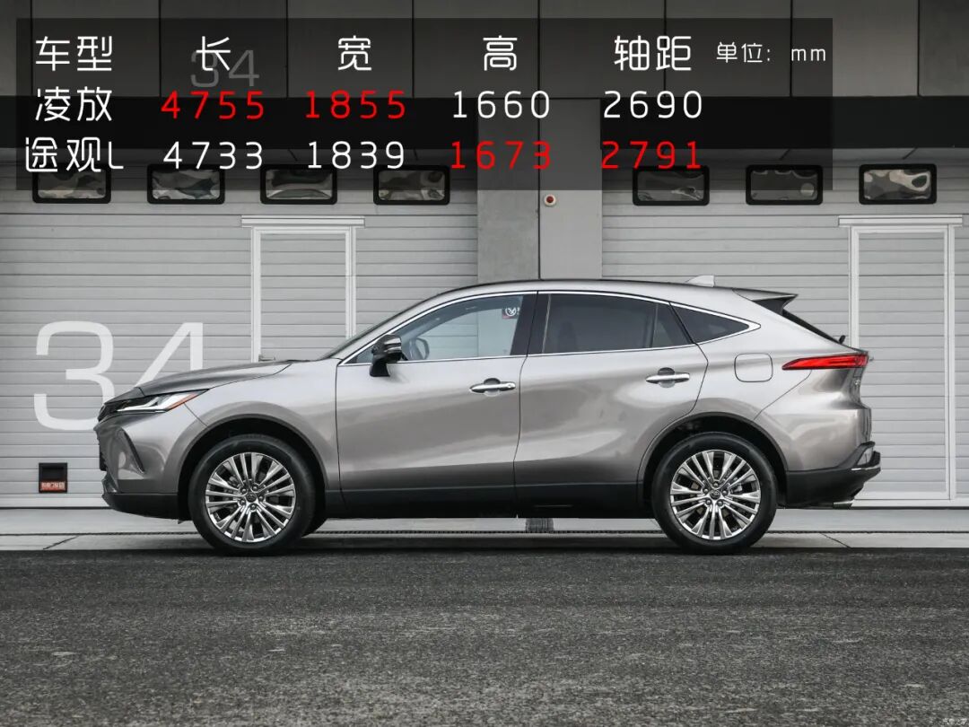凌放HARRIER与威飒介于RAV4荣放、威兰达与皇冠陆放、汉兰达之间。不过,2690mm的轴距与RAV4荣放、威兰达相同,因此精致与豪华才是两款新车的底牌。