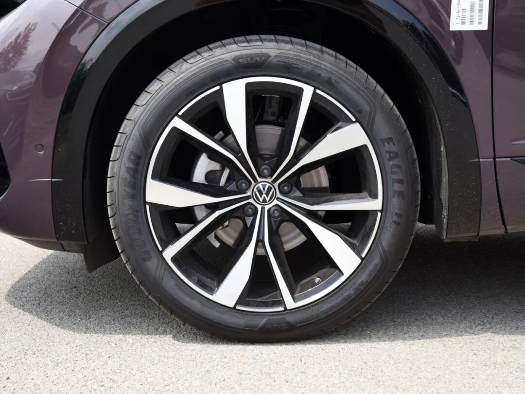指导价34.29万的揽境,拥有一套R-Line运动外观套件,视觉上这台车更加运动了,轮圈也升级为了21英寸,非常德味非常帅,轮圈造型不仅精致,且尺寸更大,达到了21英寸,同级别并不多见。