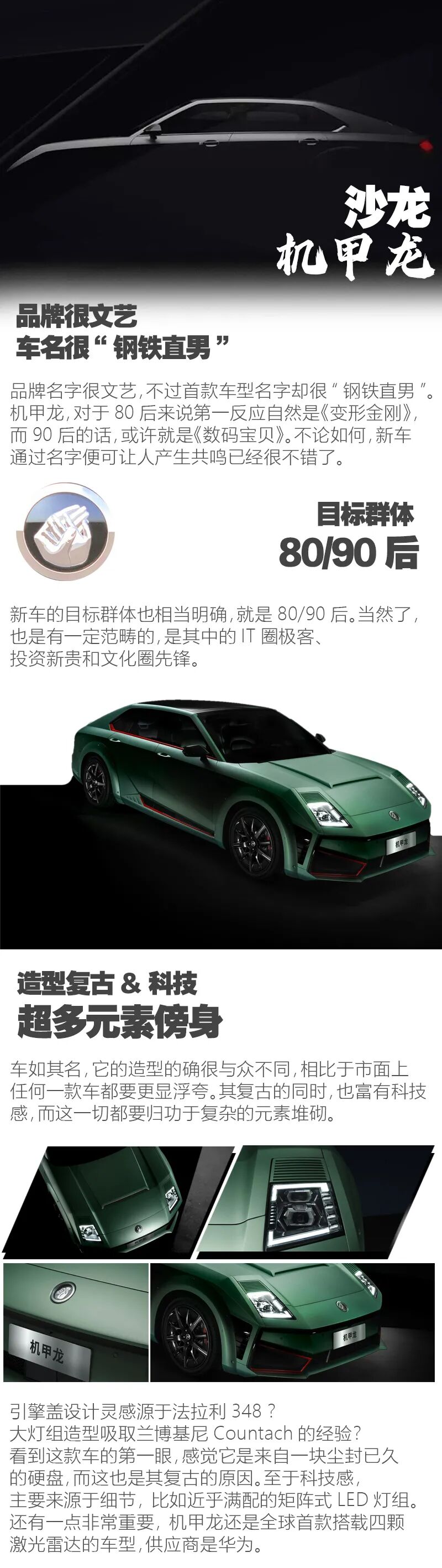 花式车名新高度不断被长城汽车旗下产品刷新,在本届广州车展上长城又放出一记大招,带来了旗下新能源高端品牌沙龙与其首款车型机甲龙。单闻车名是不是就足够令人兴奋的了?再看48.8万元的售价更是可让你瞠目结舌。价格虽不菲,但也就3个多小时的时间其全球限量版101台就已预订售罄,它到底是何方神圣?