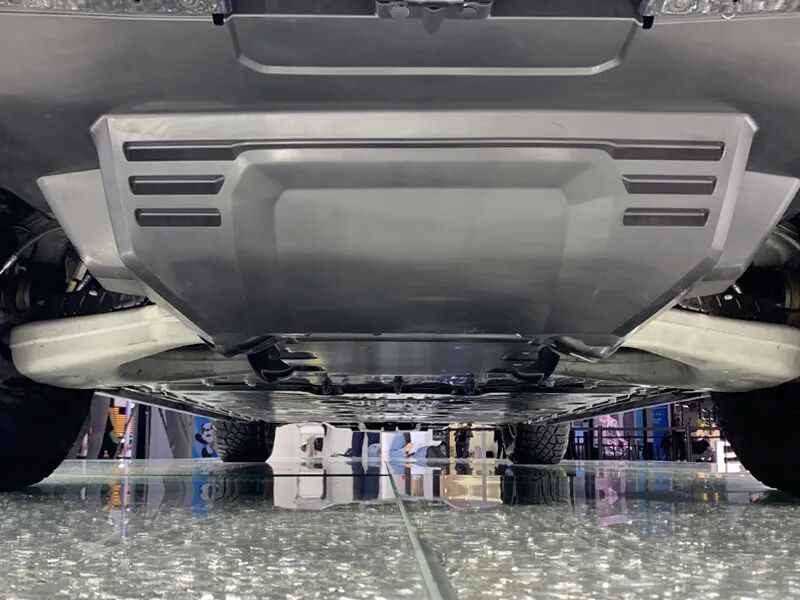 货箱盖板为电动开合的方式,中间依旧提供有“HUMMER EV”标识,设计师真的是无处不在的强调新车身份特性。车尾防护装置处,同样也可看到两个外露式拖车钩。