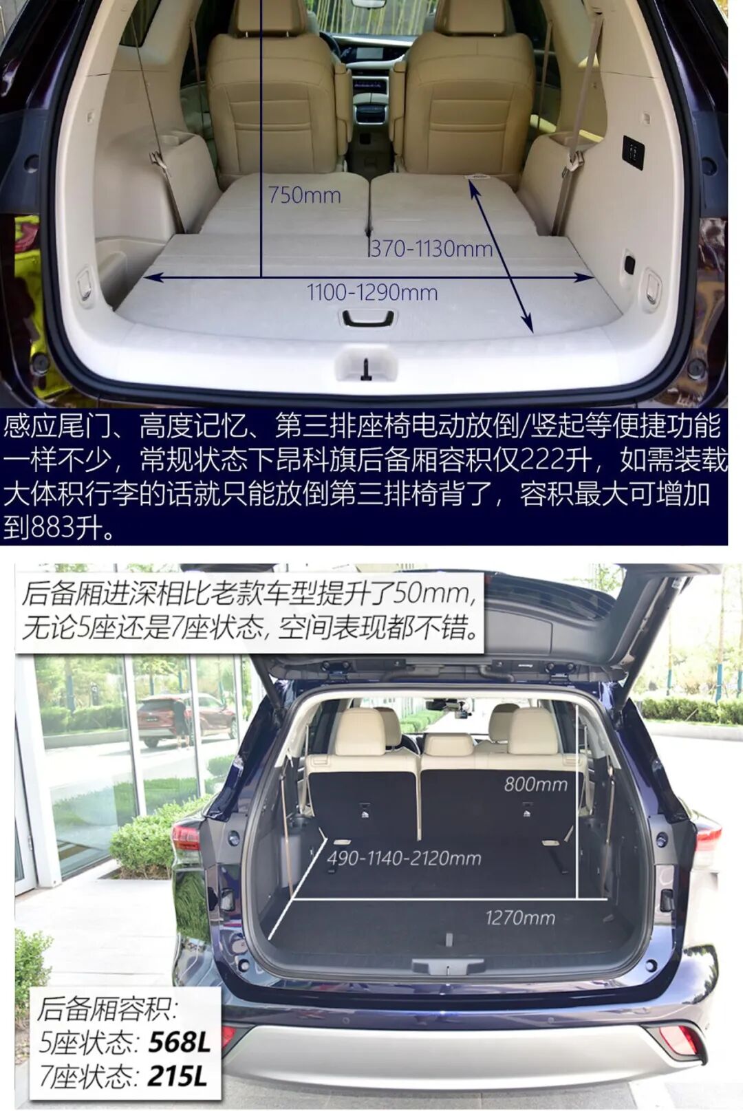 在后备厢的装载能力上,两台车其实不相上下,将第三排座椅放倒后,都可以形成一个纯平的空间,并且在纵向深度上都足够日常使用。