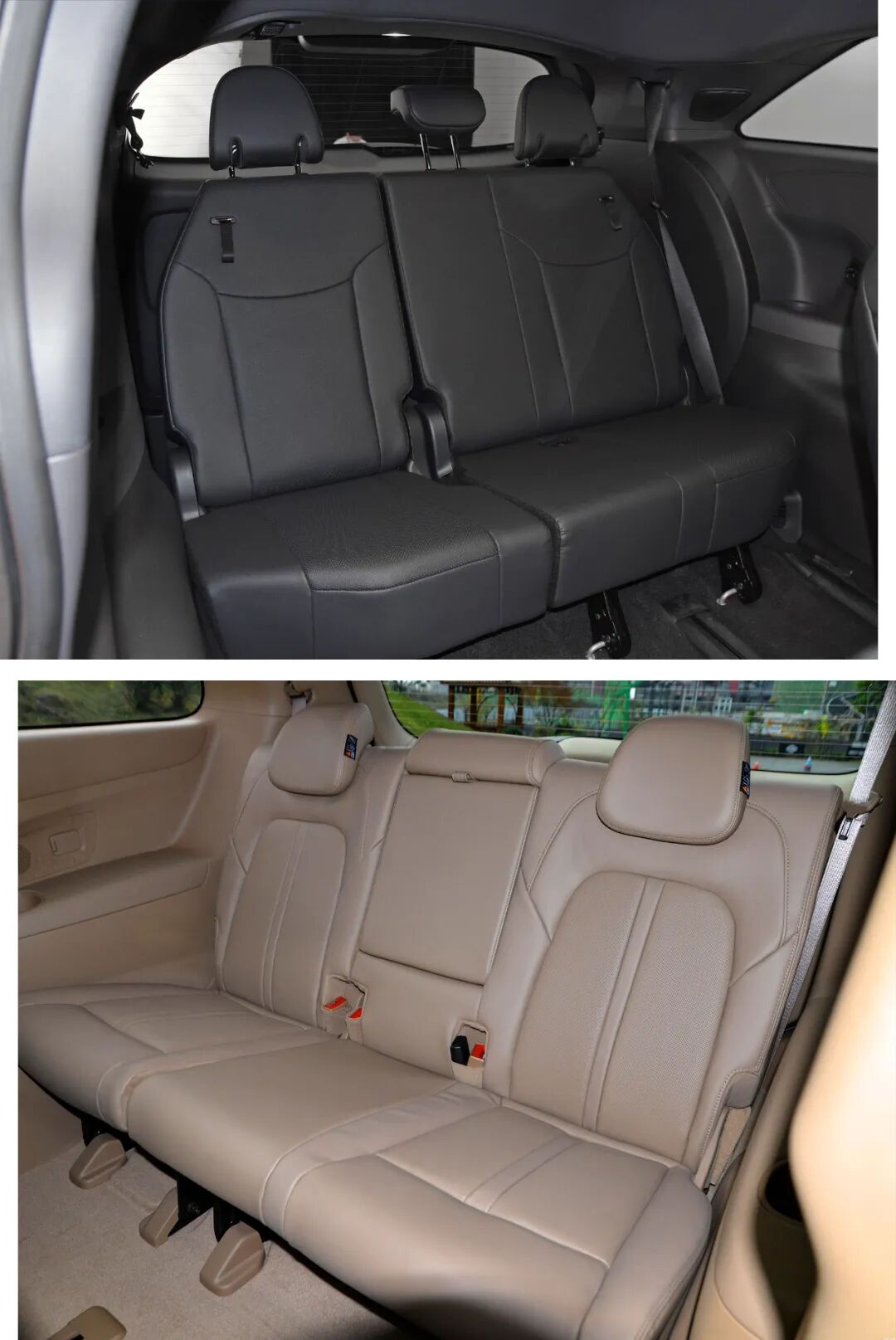 第三排座椅的舒适度上,赛那的表现相对不理想,由于车内布局原因,其靠背和坐垫都被削去了一角,影响了舒适度;GL8的第三排座椅坐垫相对较长,并且离地距离也不低,乘坐体验相对舒适。