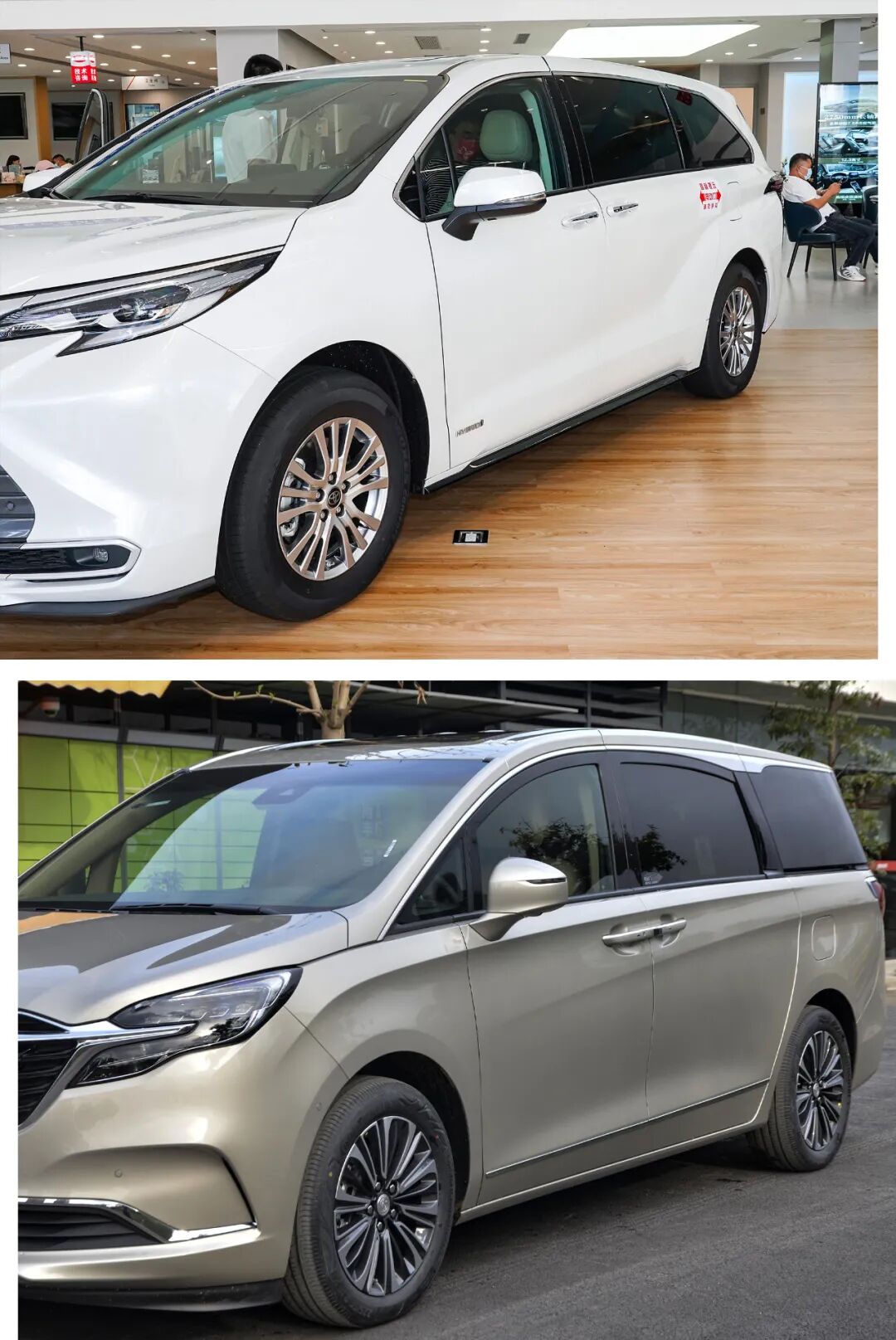在功能性上二者不分上下,并且都提供流媒体后视镜。不过,预计赛那的液晶仪表盘、大尺寸中控屏与JBL音响只在顶配或高配车型上搭载。