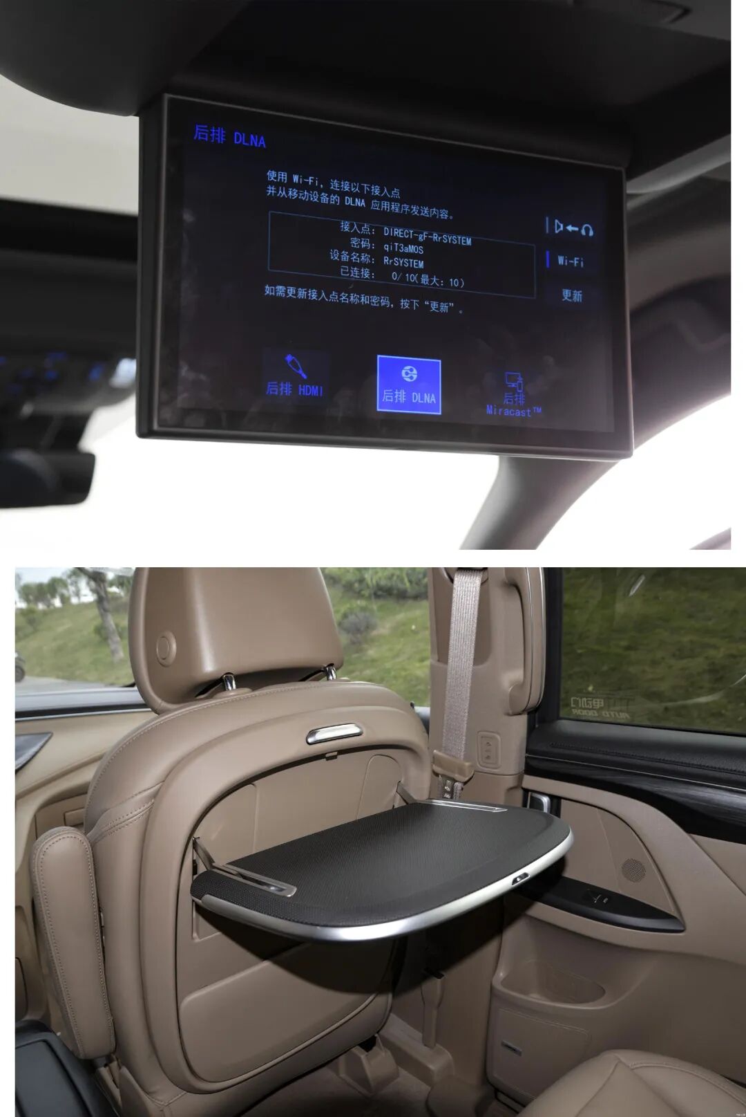 实拍的这台赛那还配有后排娱乐系统,位于车顶的显示屏可以连接外部设备用于播放视频;GL8虽然没有屏幕,但配有小桌板与230V电源,几乎可以说是一个移动的办公室。由此可见,二者在定位上的“差距”明显。