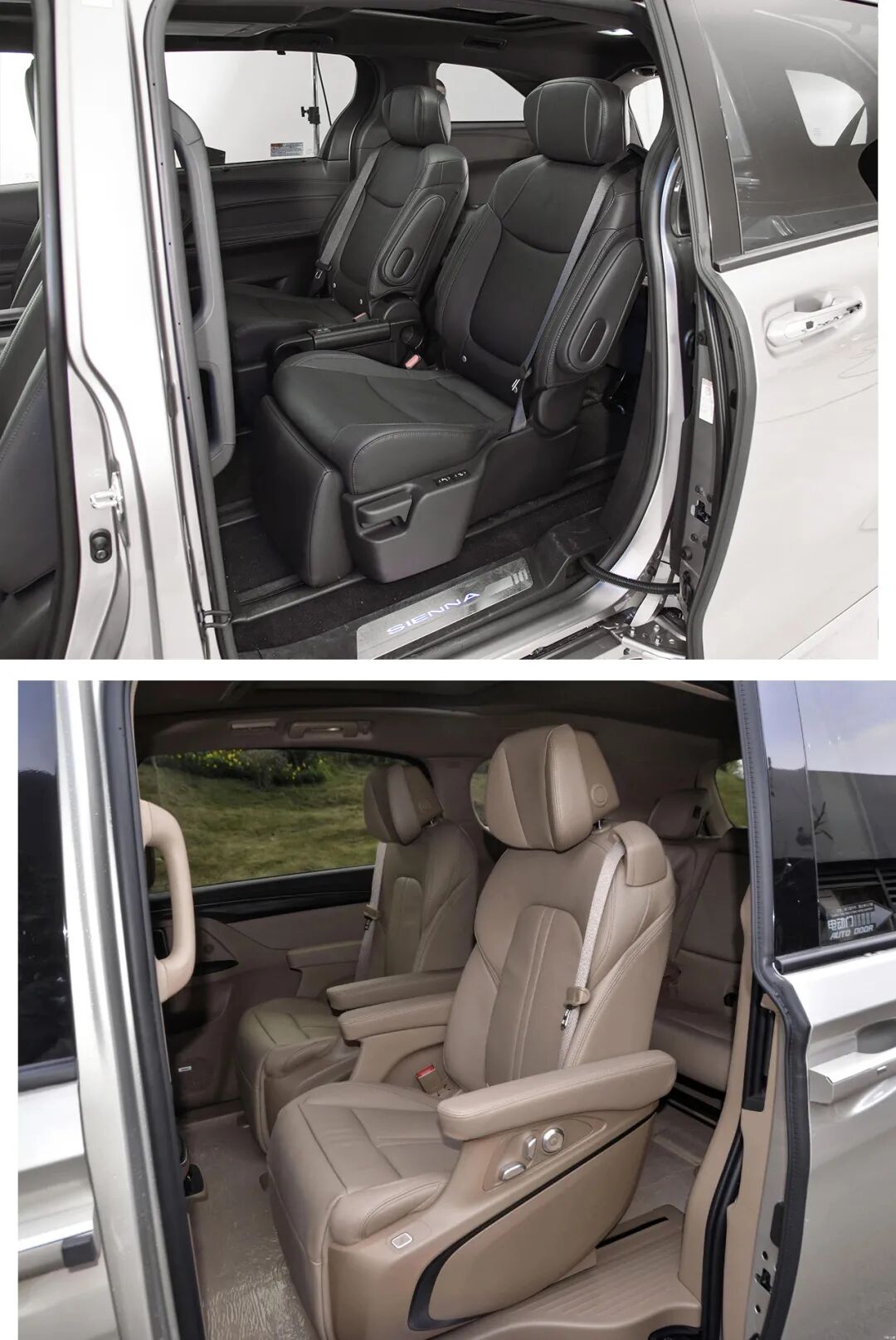 配置上,两车均采用隐藏式侧滑门滑轨,并提供双侧电滑门与四门无钥匙进入。赛那在此基础上还提供侧滑门踢脚感应启闭功能,无论是抱着孩子还是拿着行李,打开车门时都更加方便。