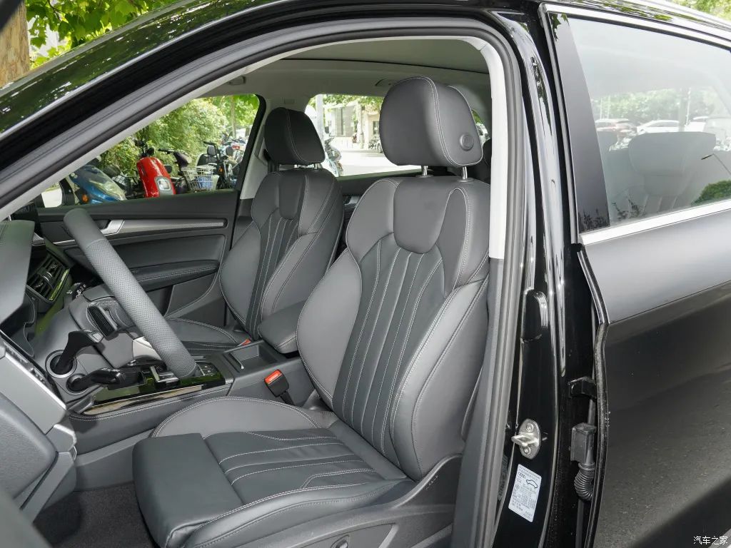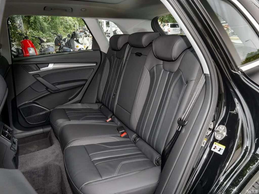 座椅造型相对宽大,内部填充物较为扎实,对身体的支撑性充足。前排座椅支持多向电动调节,高配车型上带有腿托调节以及腰部支撑调节。舒适性配置方面,中高配车型上将配备前排座椅加热功能,前排座椅通风则是全系车型均需要选装。国产加长轴距后,奥迪Q5L的后排乘坐空间较为宽敞,在同级别中表现不错。