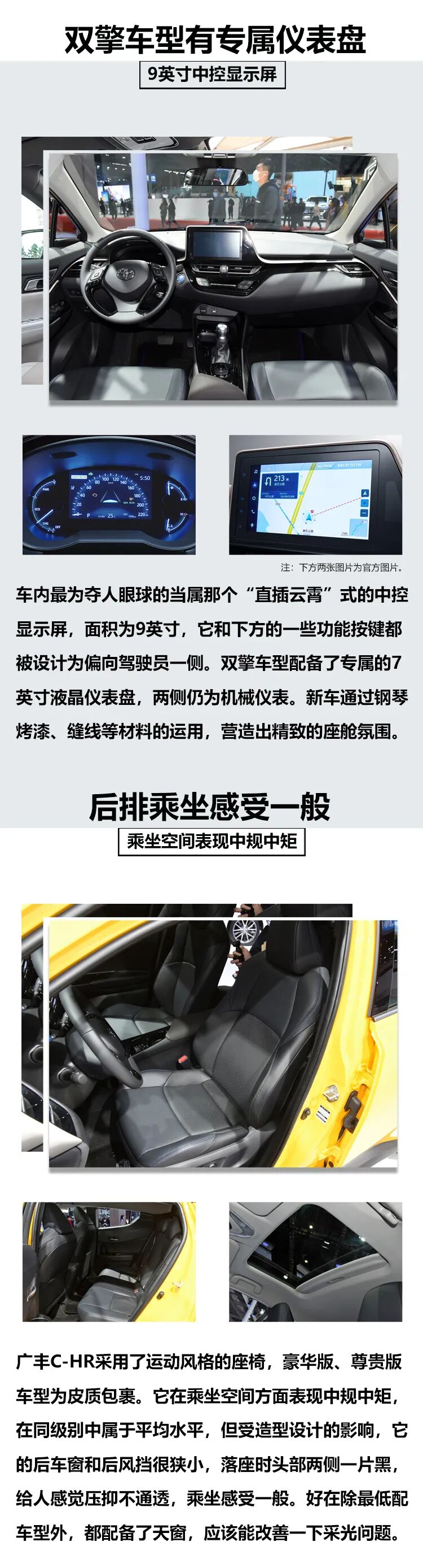 与同级别销量最好的东本XR-V和广本缤智相比,广丰C-HR之前一直是用2.0L自然吸气发动机,来对抗前两者1.5L自然吸气发动机/1.5T涡轮增压发动机的搭配,现在混合动力加身,有了对抗1.5T涡轮增压发动机的筹码,且给了2.0L自然吸气发动机车型一定下抻的空间。未来广丰C-HR在现有月均销量5000+基础上有一个稳步增长,应该是可以预料到的。