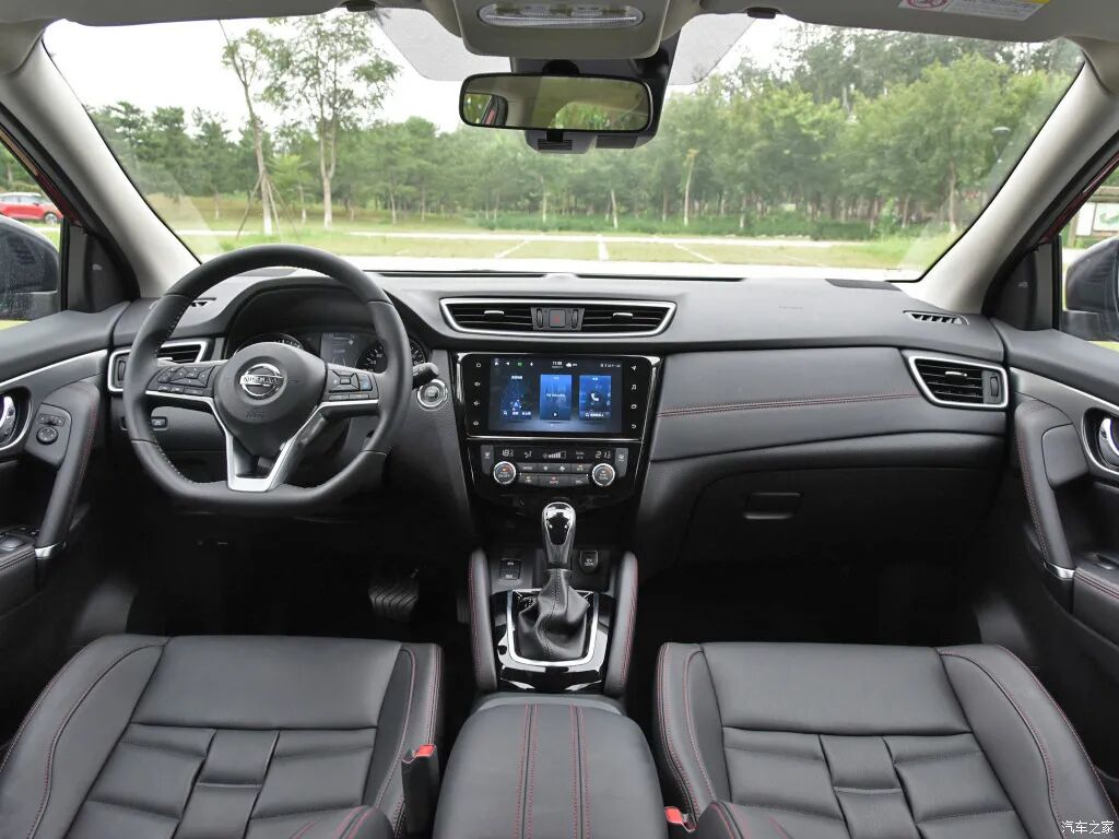 进入车内,逍客的内饰布局采用了对称式的设计,不仅看上去较为稳重,同时也照顾到了日常操作的实用性,而在一些细节方面,双缝线以及大面积的皮质包裹也让车内的乘坐体验更上一层楼。
