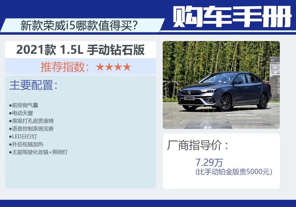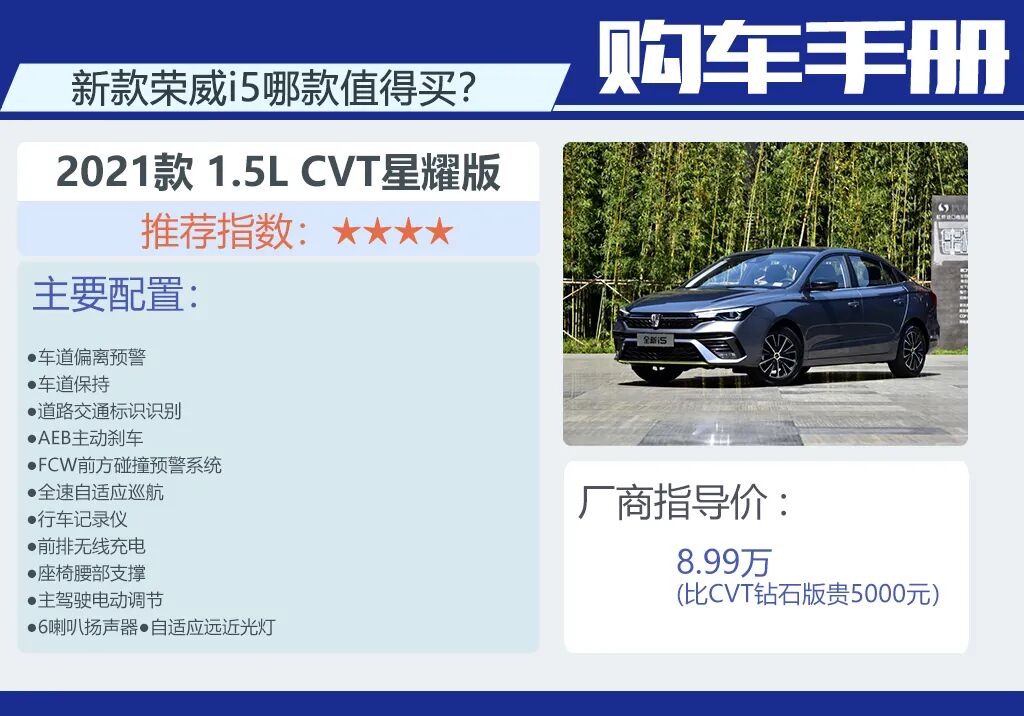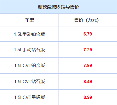 2021年4月23日,新款荣威i5正式上市,新车指导价6.79-8.99万元。作为中期改款车型,荣威i5在外观、内饰设计的变化明显,使得整台车变得精致有型,而价位入门的特点也会受更多消费者关注。